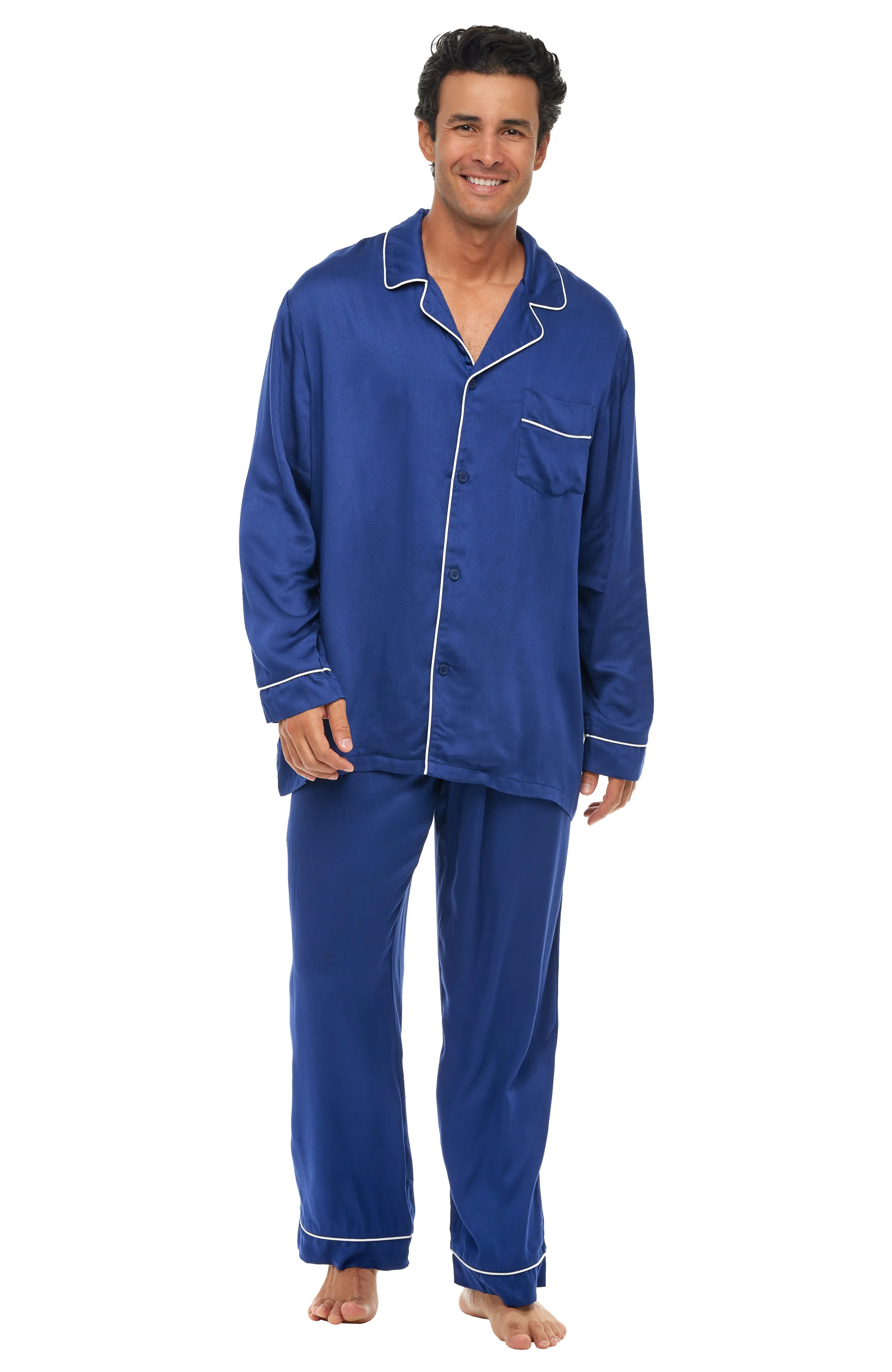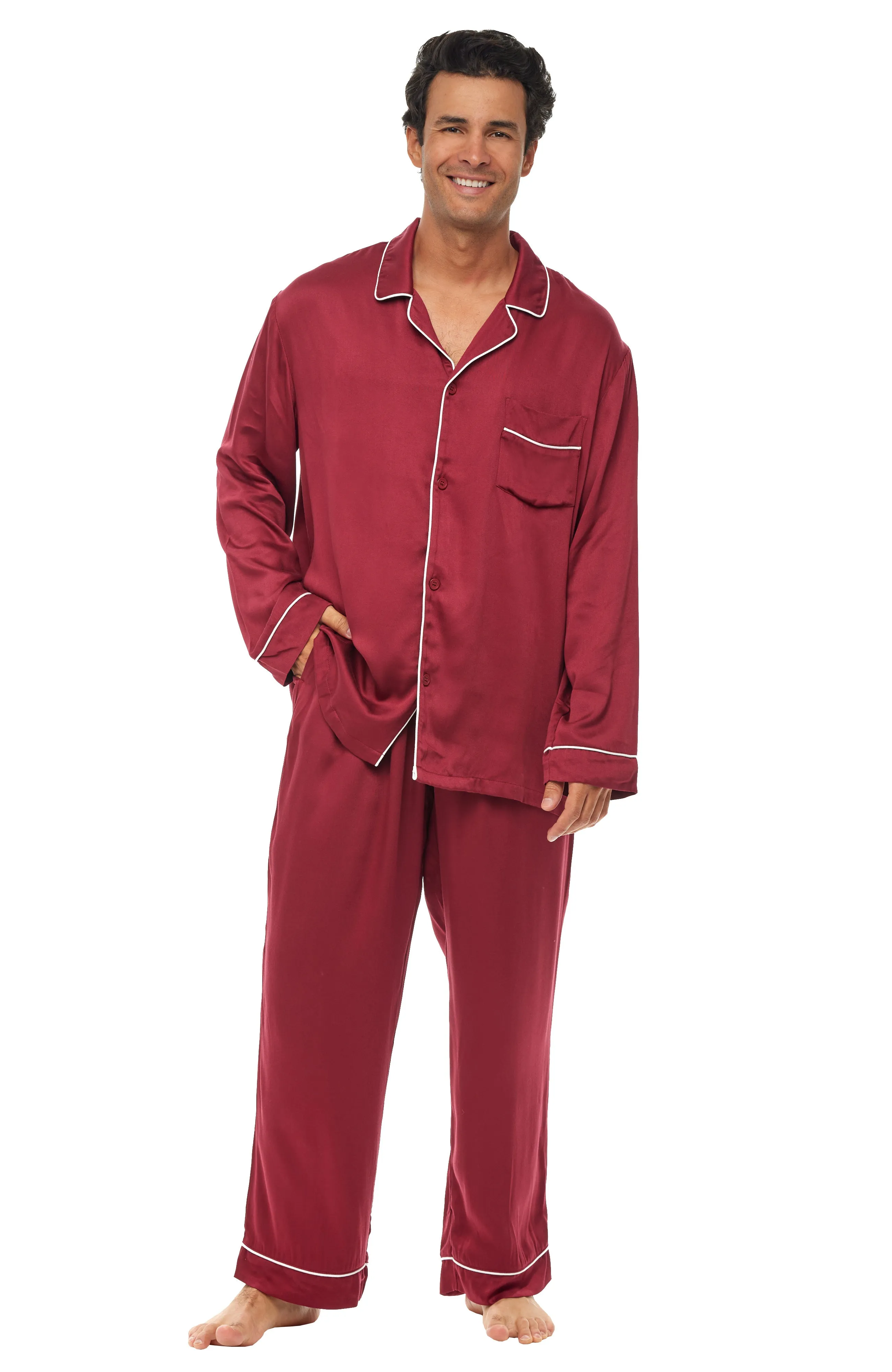 Men's ultra-soft rayon pajamas set with deep side pockets, elastic waist and classic pj cut.