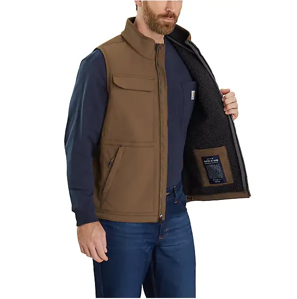 Whether the outdoors is your jobsite or playground, this men's Super Dux vest keeps you covered against the elements. It's named after the first line of Carhartt hunting gear, released in the 1930s. The nylon is lightweight and strong, making it comfortable for active days. It's also water-repellent, wind-resistant, and lined with soft sherpa fleece for warmth.