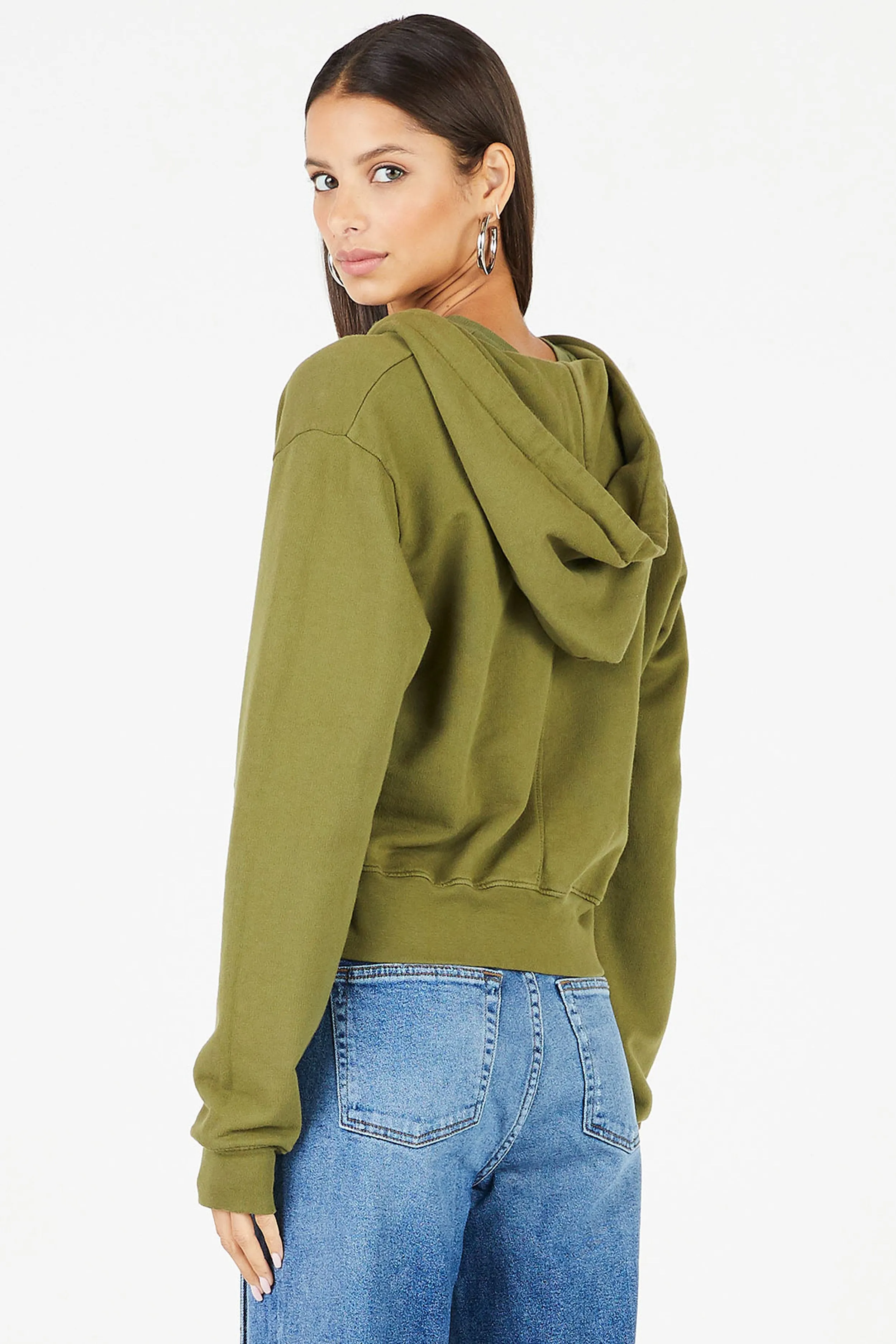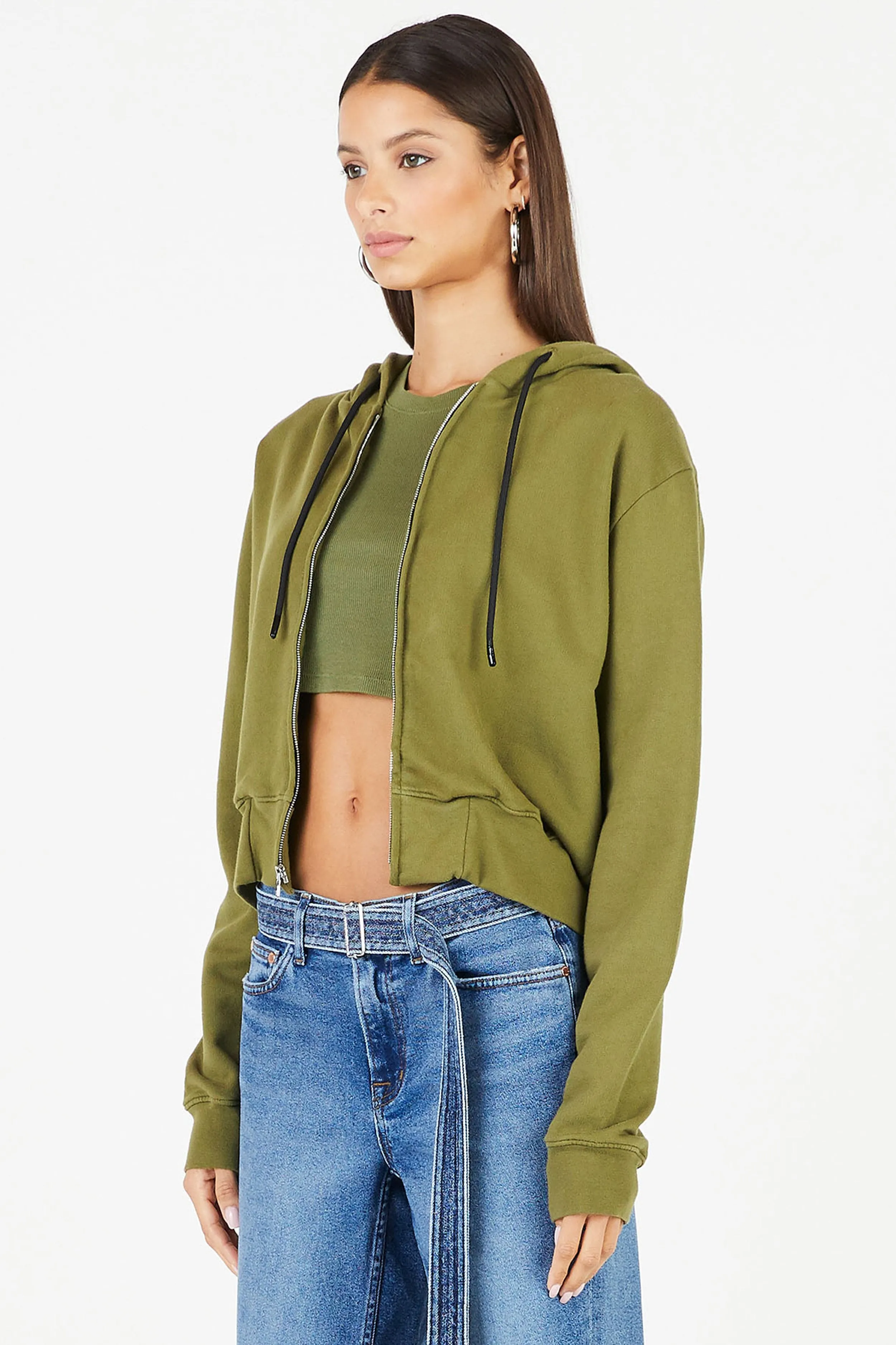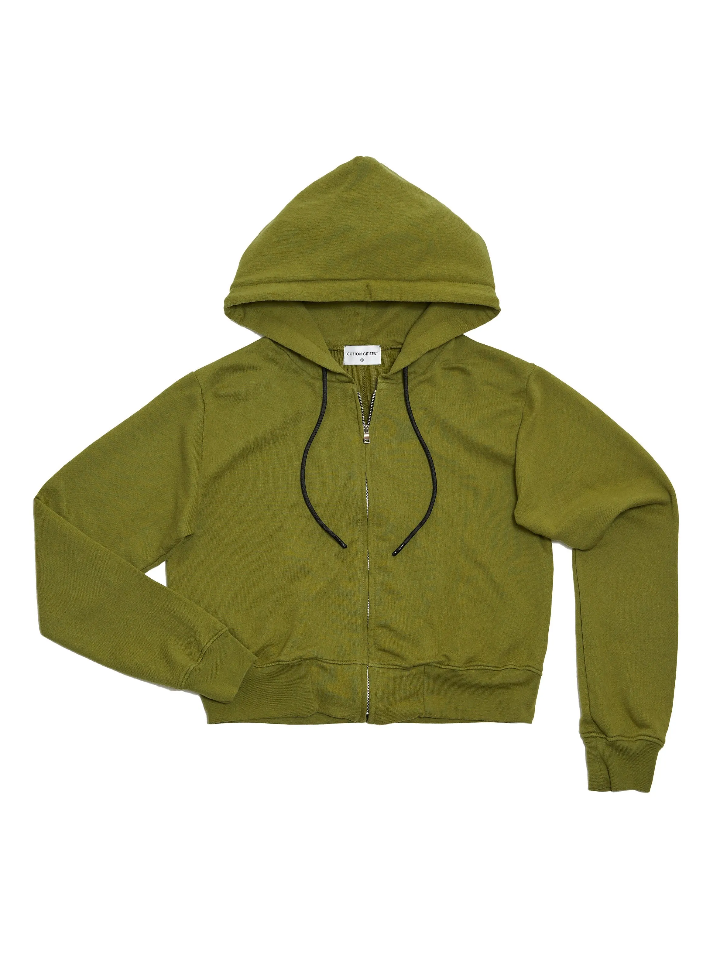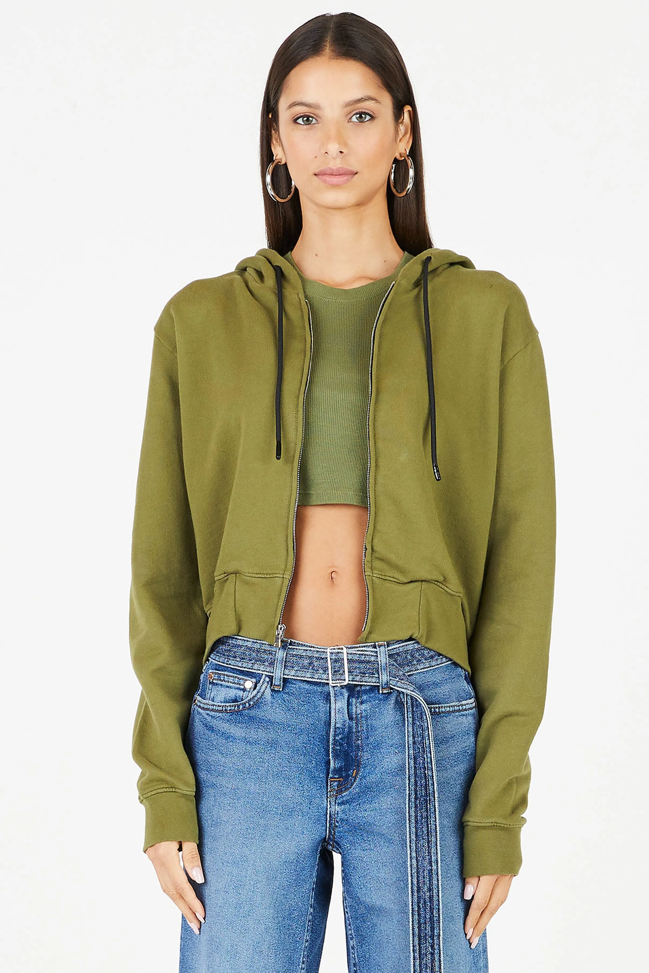 The Cotton Citizen Milan Crop Zip Hoodie was handcrafted in Los Angeles. This French Terry sweatshirt features a comfortable and relaxed fit with grinding done by hand on the rib hems.