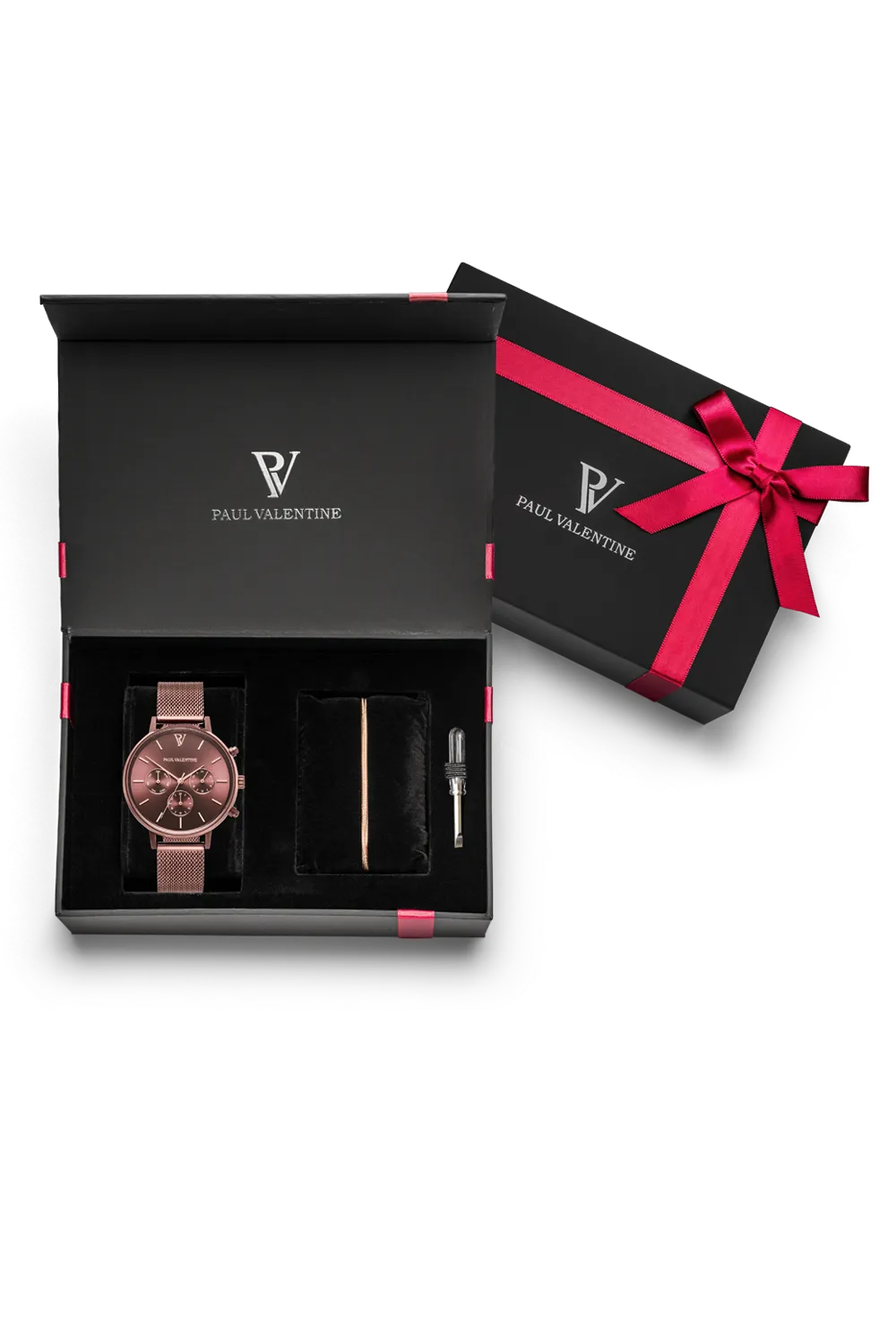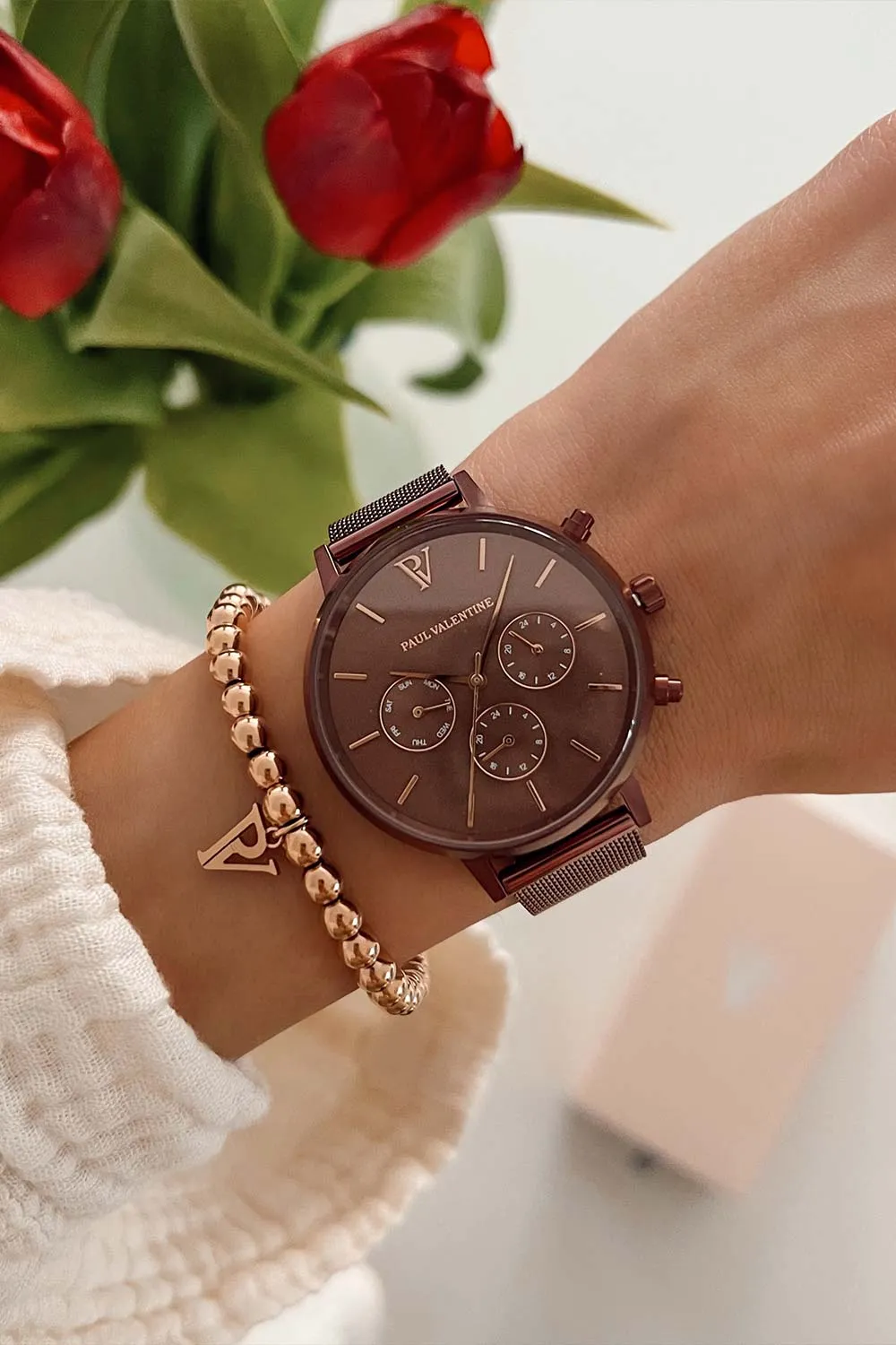 We created an exclusive PV gift box with our most popular products. The Multifunctional Coffee Box contains our bestseller watch Multifunctional Coffee Mesh combined with the brand new Faye Sleek Bracelet in Rose Gold color.