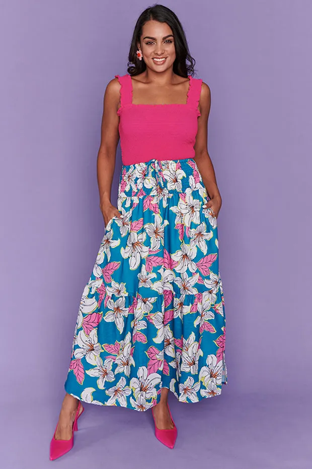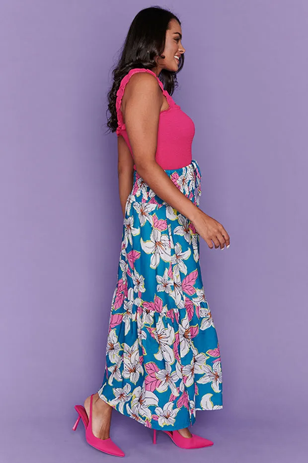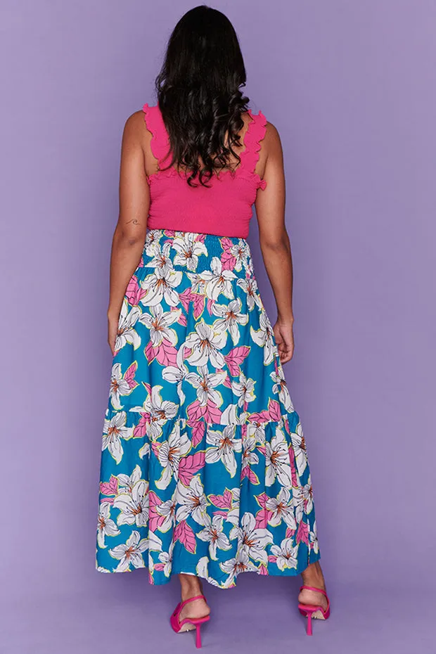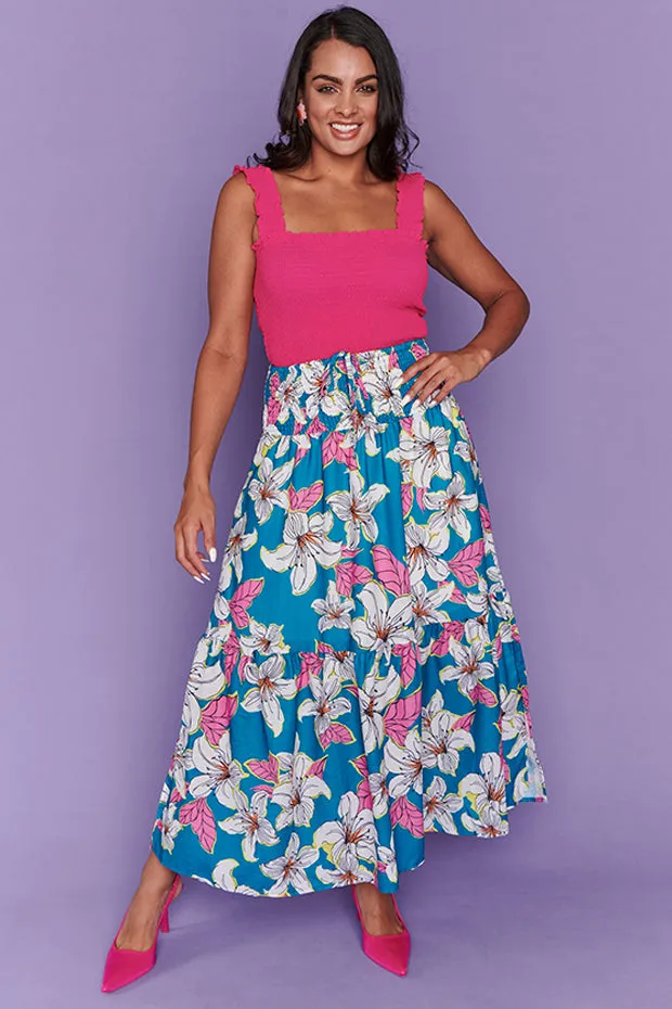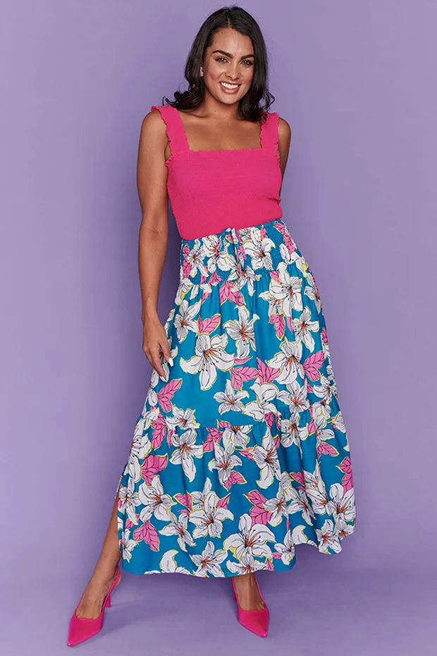 Featuring a shirred elastic waist for a close fitting but comfortable fit. The skirt then flares out into a generous flowing tiered skirt with subtle splits, with plenty of room for movement & cute effortless vintage look💃🏼