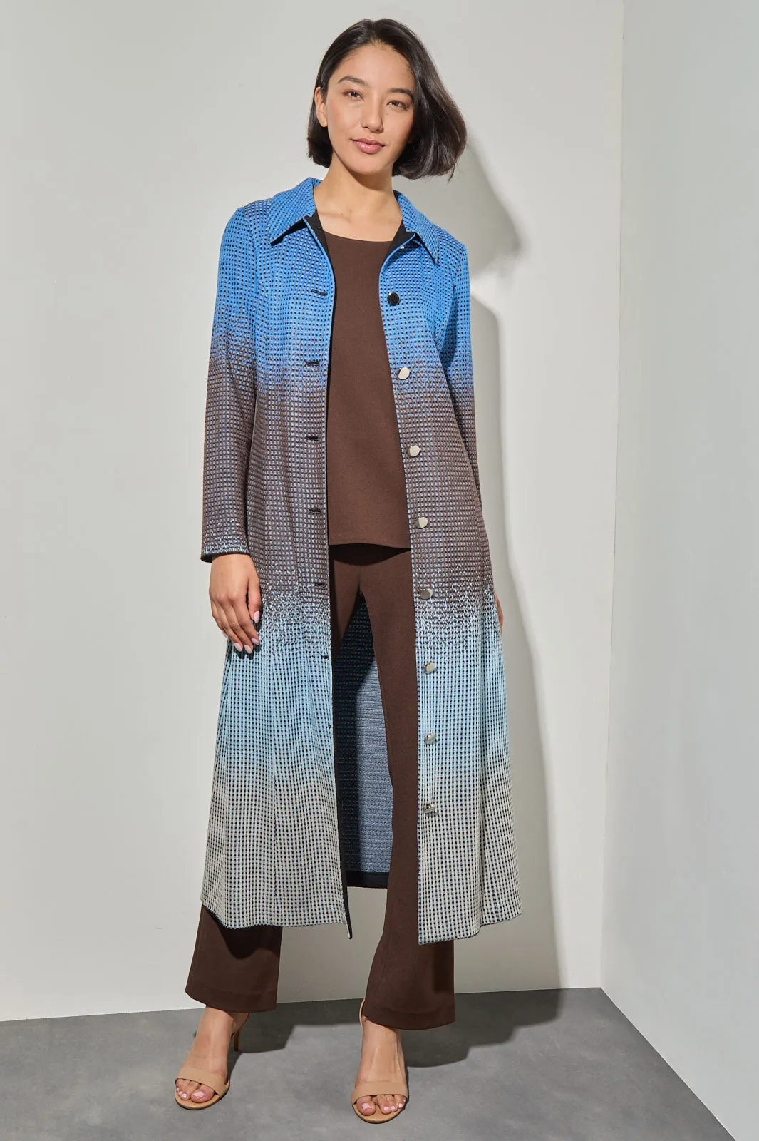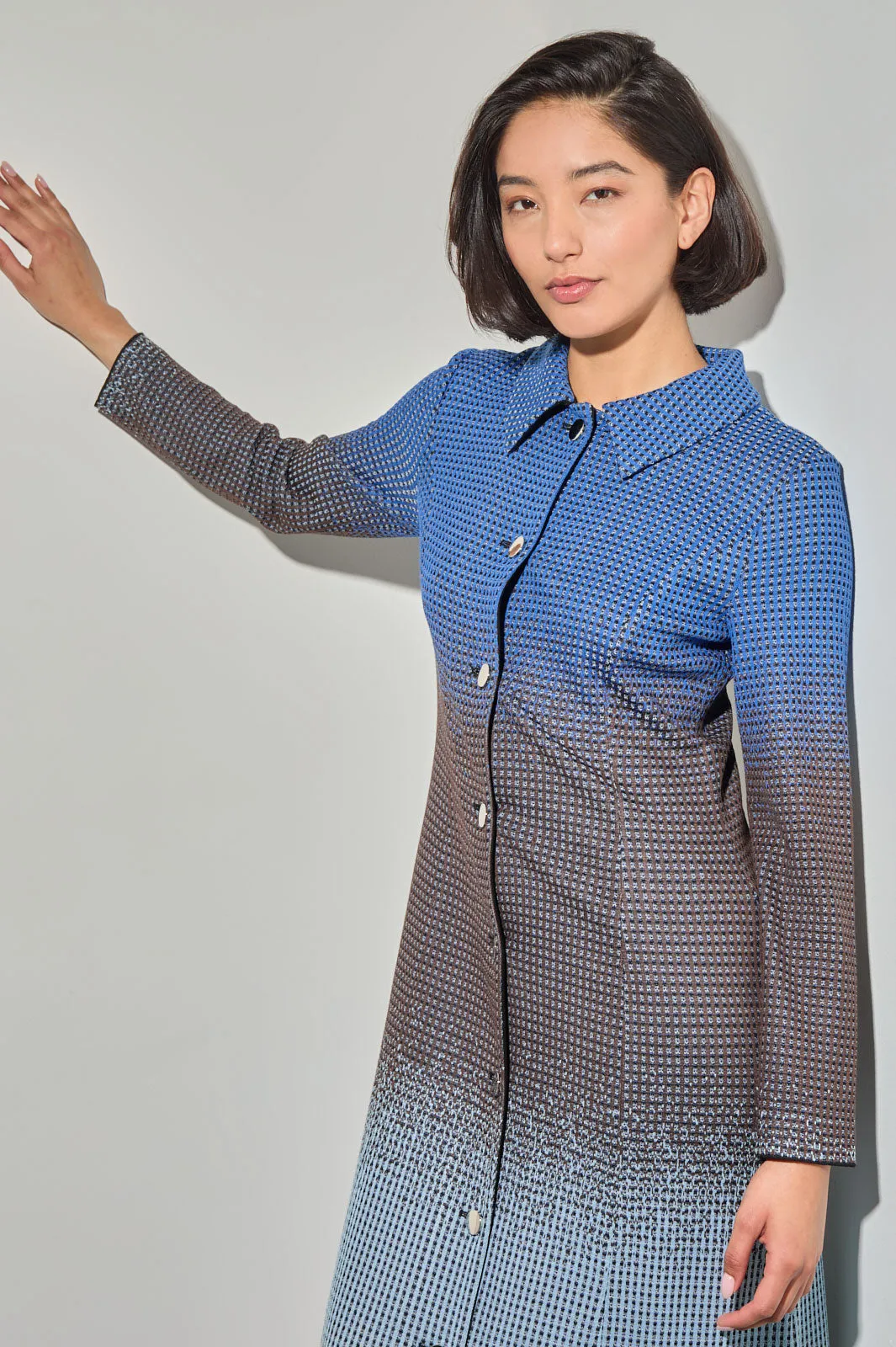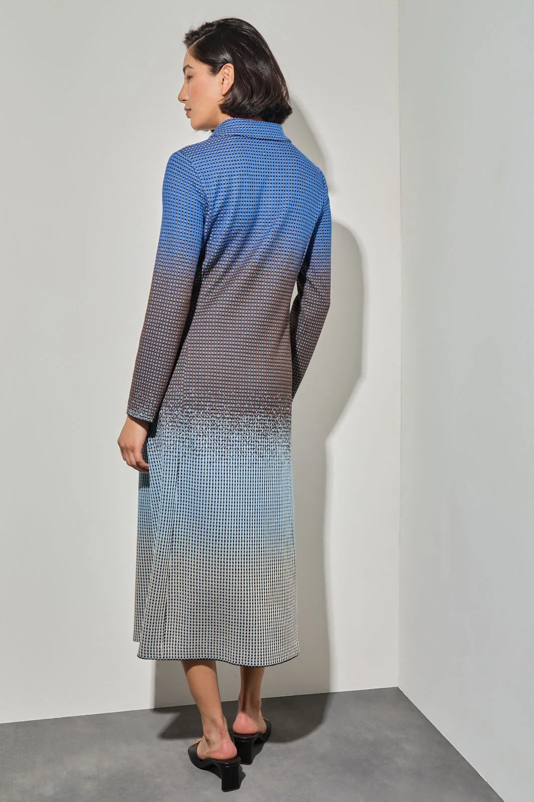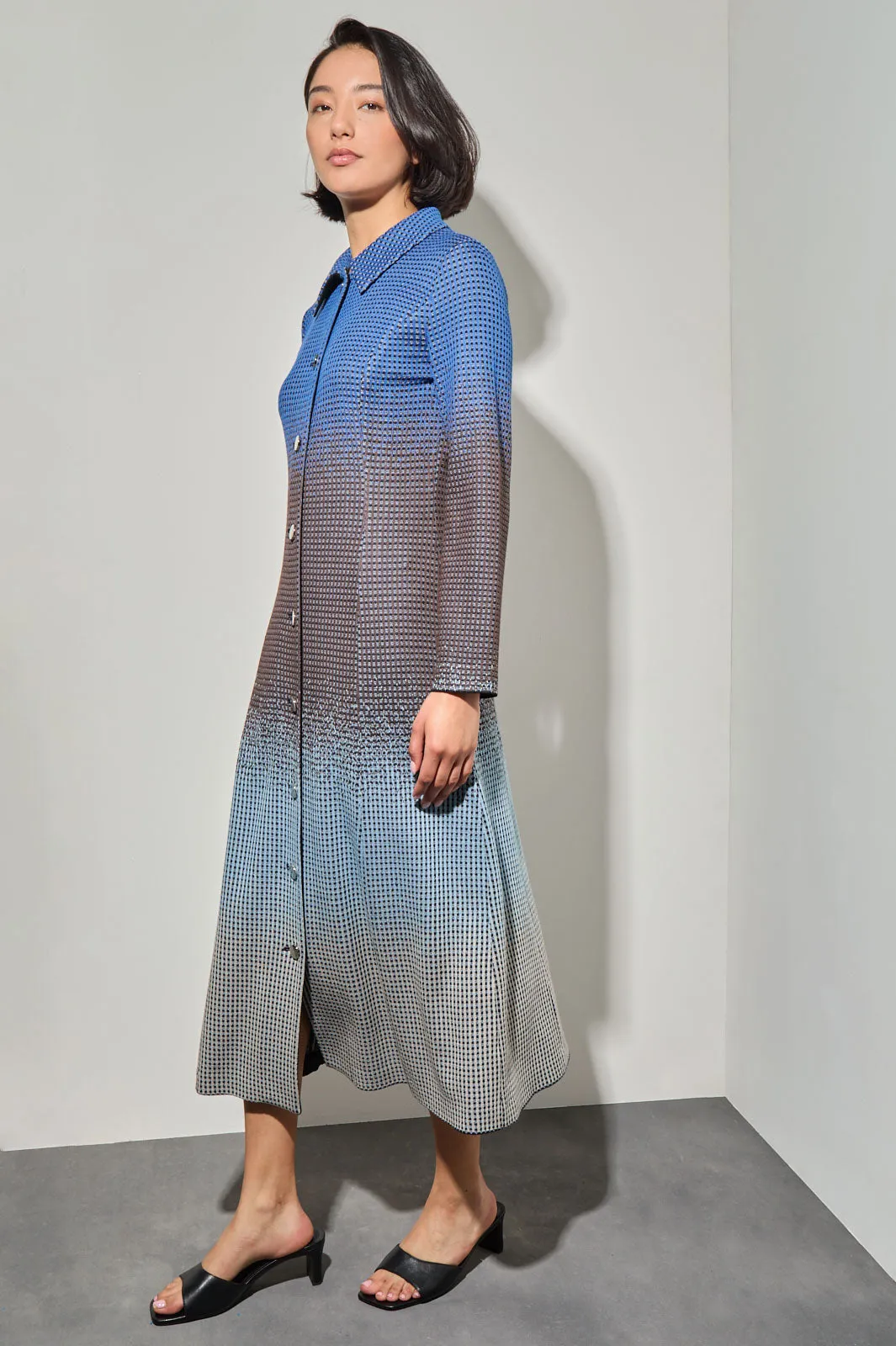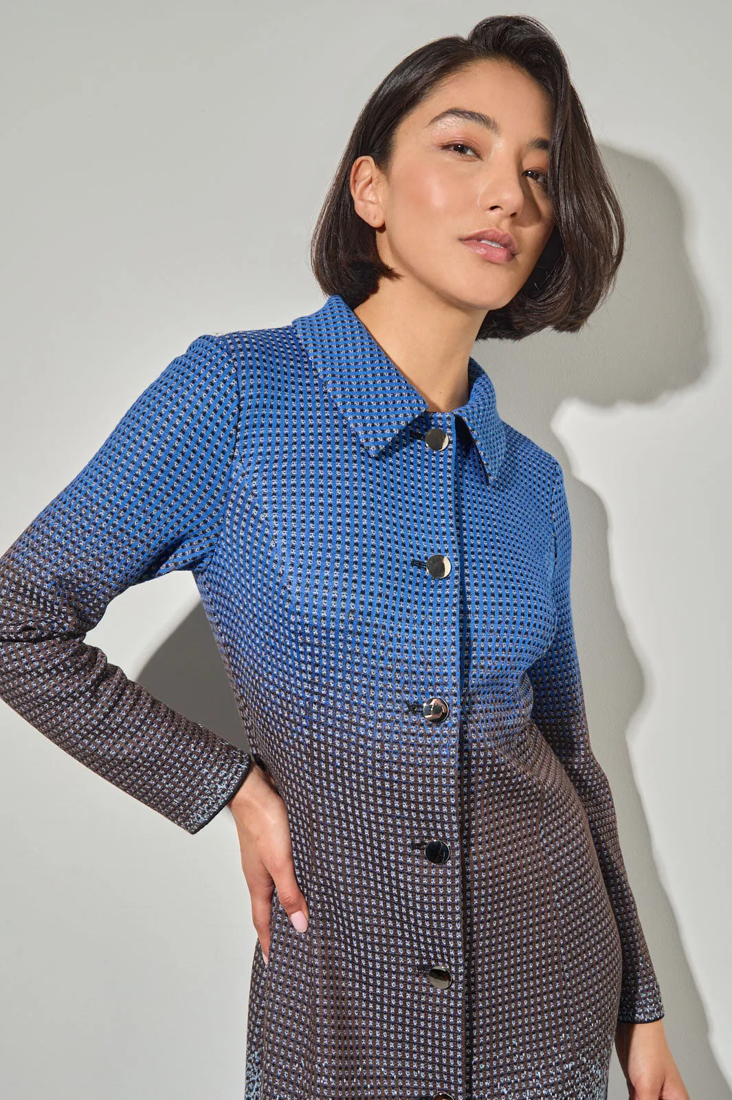 Versatile and stylish, our Ombre Jacquard Knit Midi Shirt Dress is a must-have for your wardrobe. Crafted from a luxurious jacquard knit fabric, this dress features a stunning ombre effect that is sure to impress. The shirt collar and button front add a touch of sophistication, while the midi length is perfect for any occasion. This dress can also be worn open as a jacket, adding to its versatility.