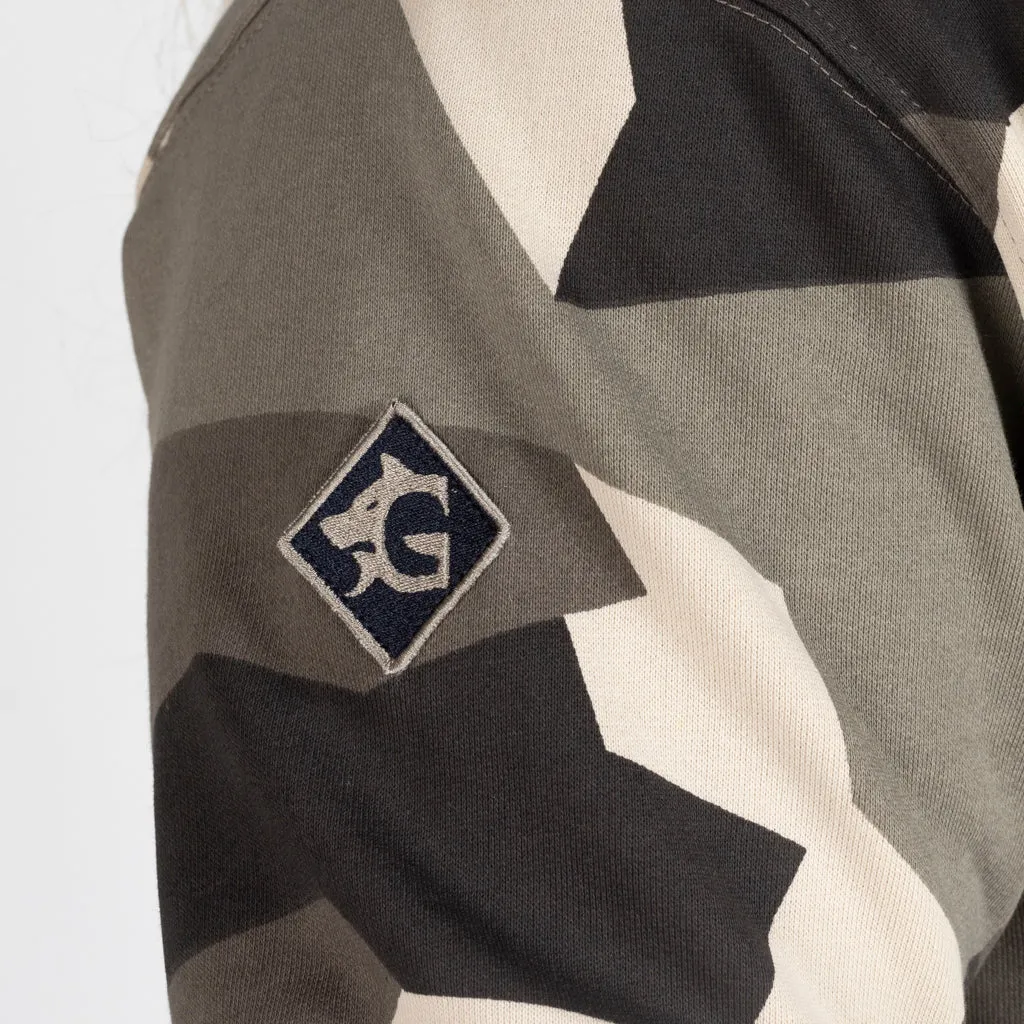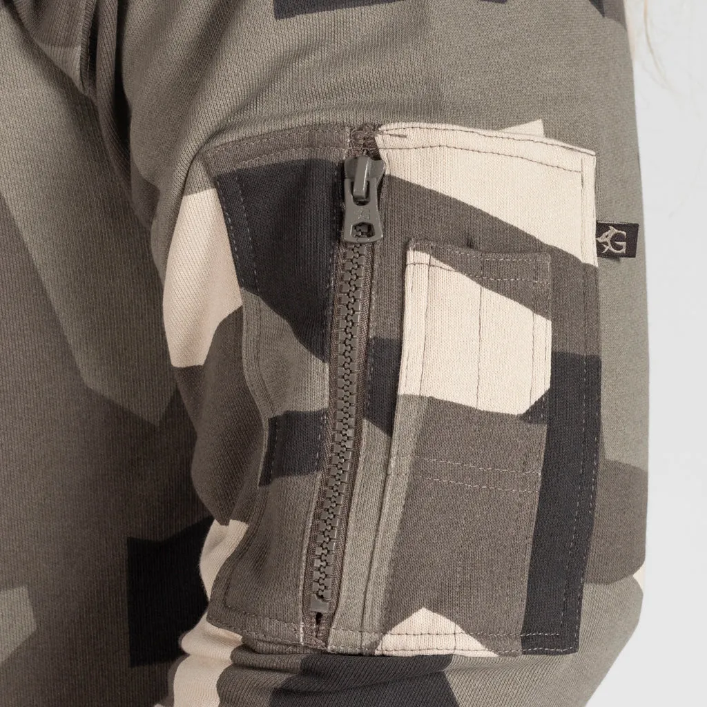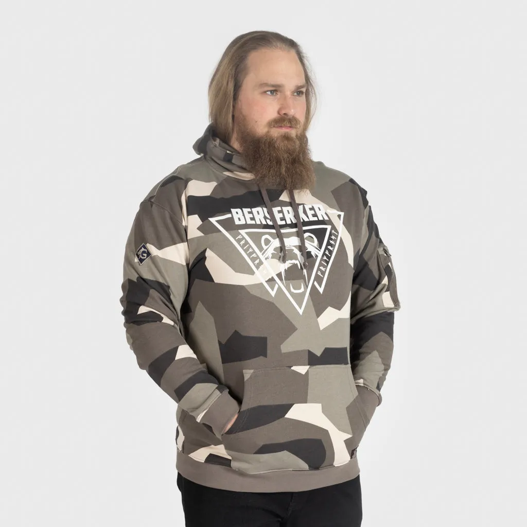 Premium pullover hoodie in the famous M90 camo pattern used by the Swedish Armed Forces. It is custom-made for Grimfrost in soft, luxurious organic cotton. Even the dyeing and printing processes are fully organic, which is good for both You and Mother Earth. The hoodie comes with a zipped utility pocket on the left arm and spacious kangaroo pouch pockets. To top things off, we have given the drawstring eyelets a Younger Futhark runic circle.