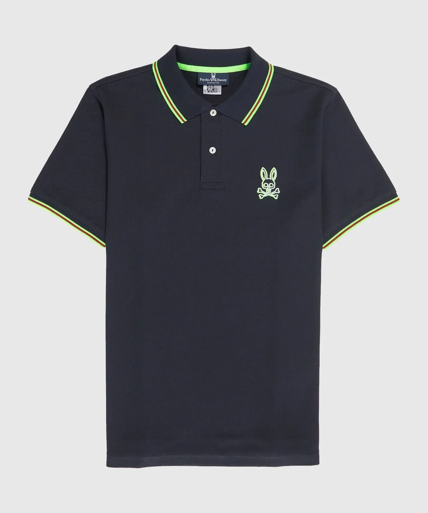 Taking a subdued approach to reimagining this classic style, the men's Gresham fashion polo is emblazoned in a raised embroidered shadow-like Bunny logo and vibrant contrasting knit stripes at the collar and cuffs.