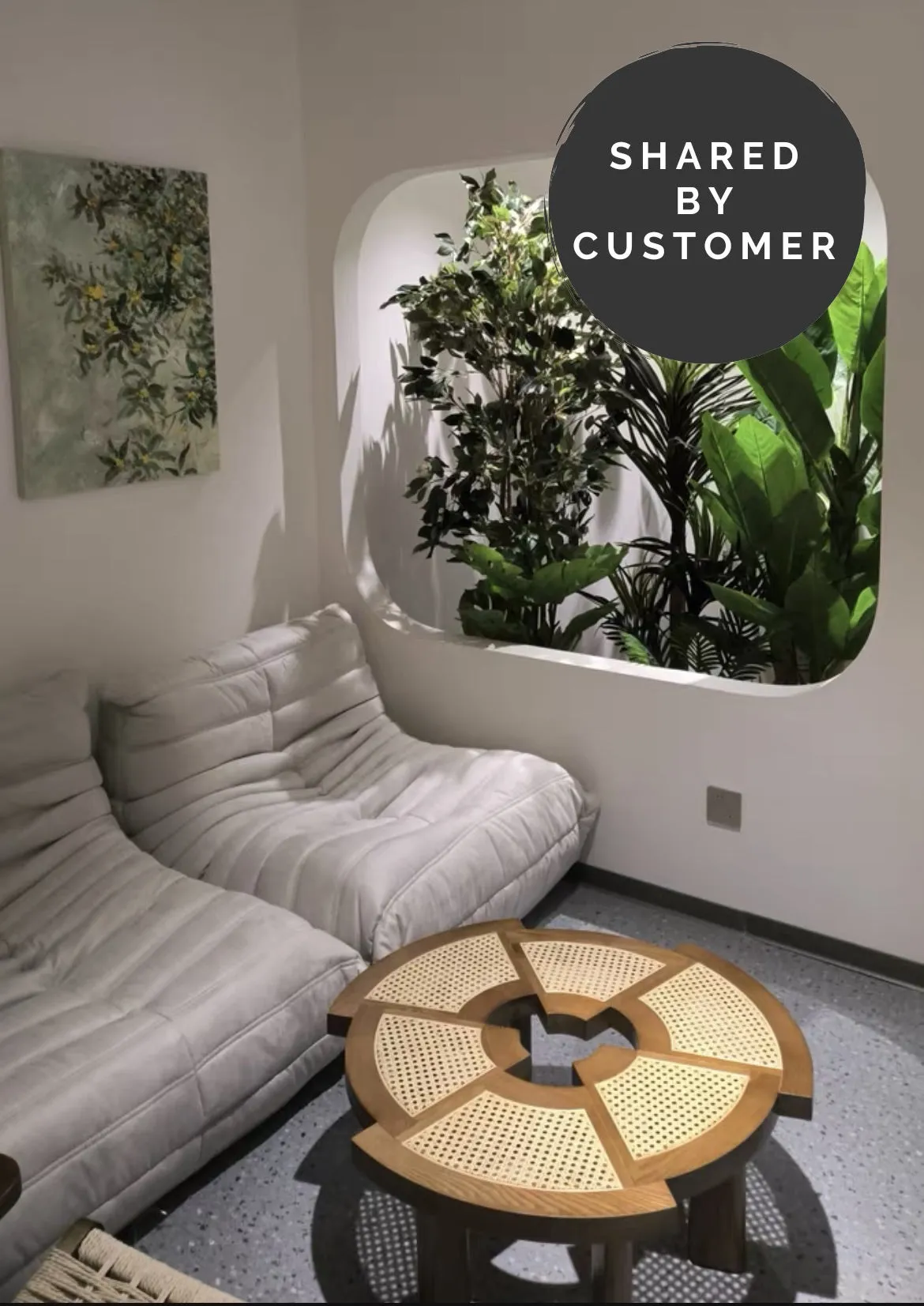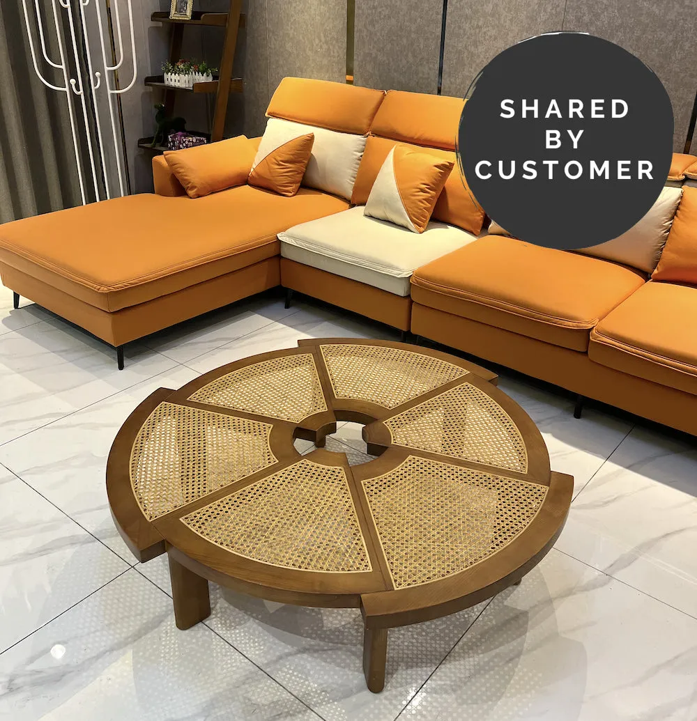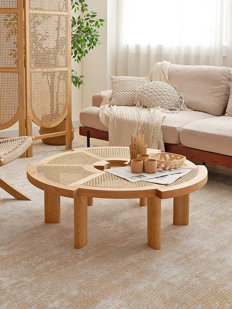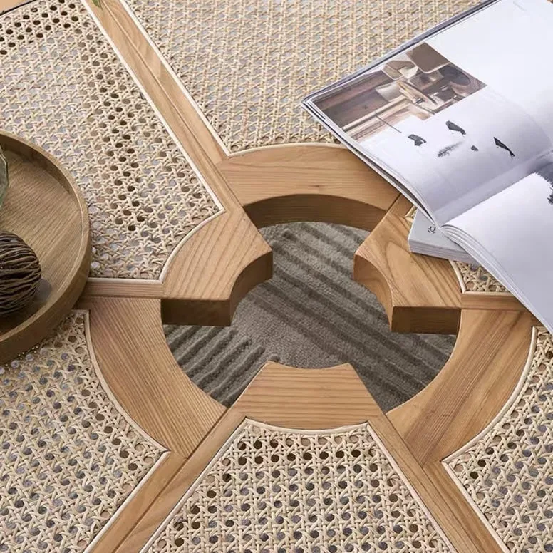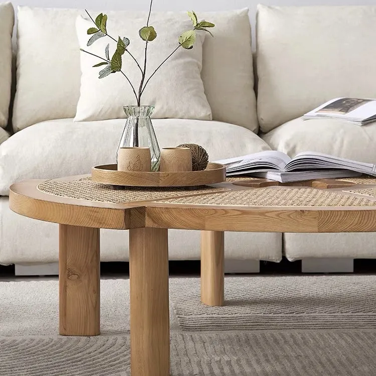 Originally designed by Charlotte Perriand, a French architect and designer, in 1962. This Replica Rio Low Table's unusual design, combined with its functionality, elevates it to the status of a masterpiece. This round coffee table is made of solid ash wood with a transparent matt finish and a rattan cane mesh top. The six non-aligned sections that make up the table top with a hole in the centre come in three different colours - natural, walnut or black.