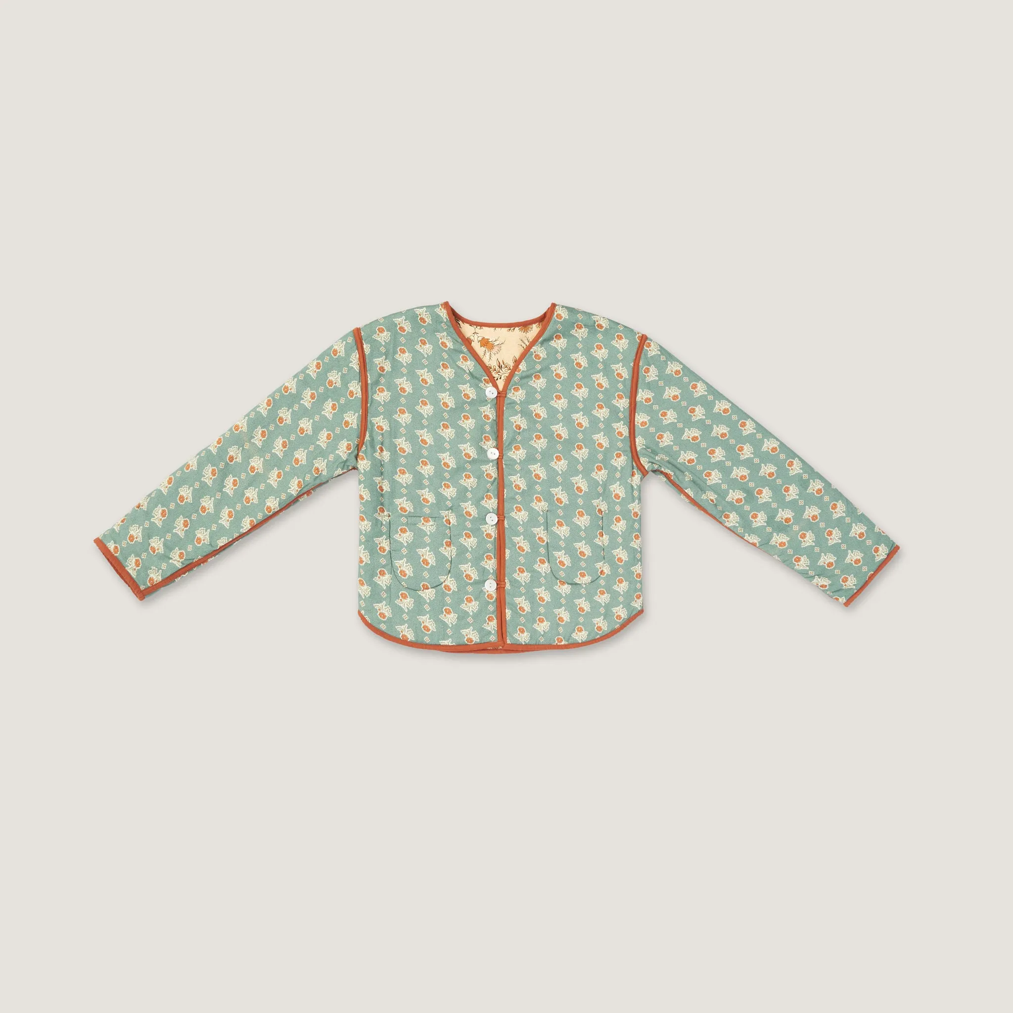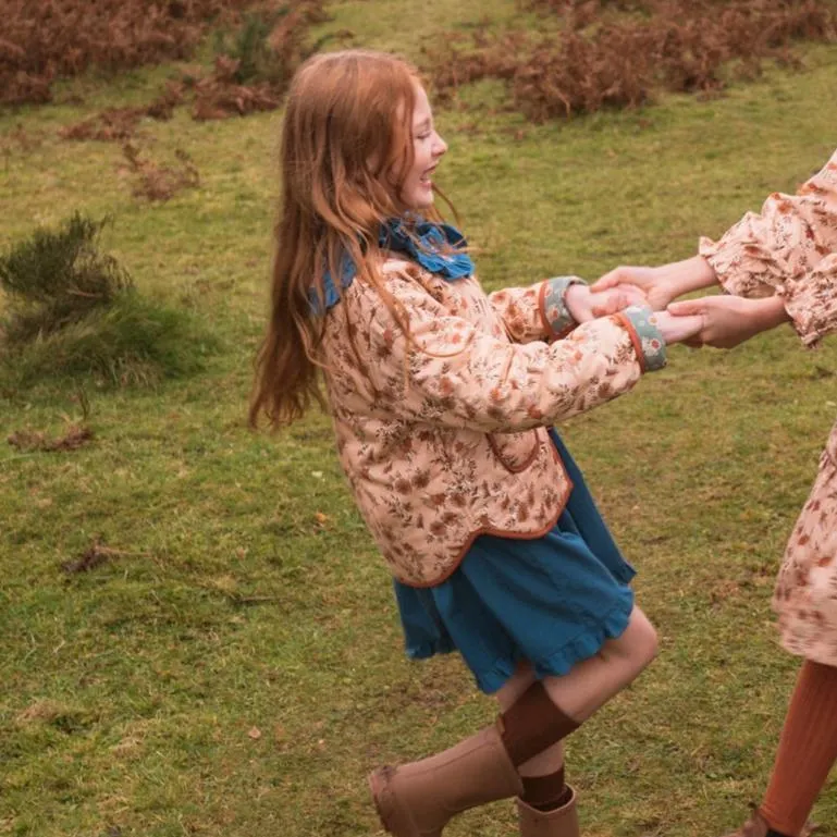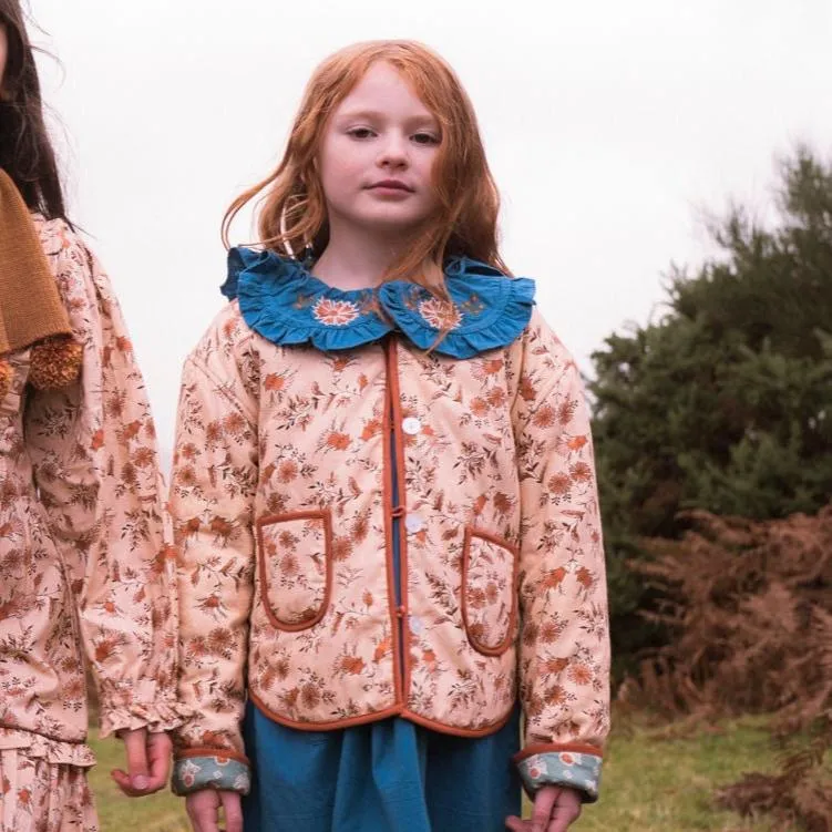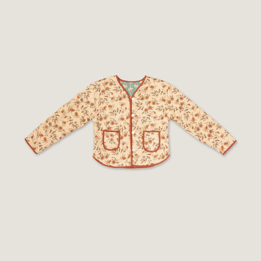 Our beloved reversible jacket for when they want to be snug as a bug. Thoughtfully finished in this season’s Autumn Floral Print on one side and Fall Block Print on the other. Piped pockets add functionality and fun. Binding along all edges ensures security. Durable cream buttons add easy closure. Soft and cozy, a dream layer for your tiny adventurous beauty.