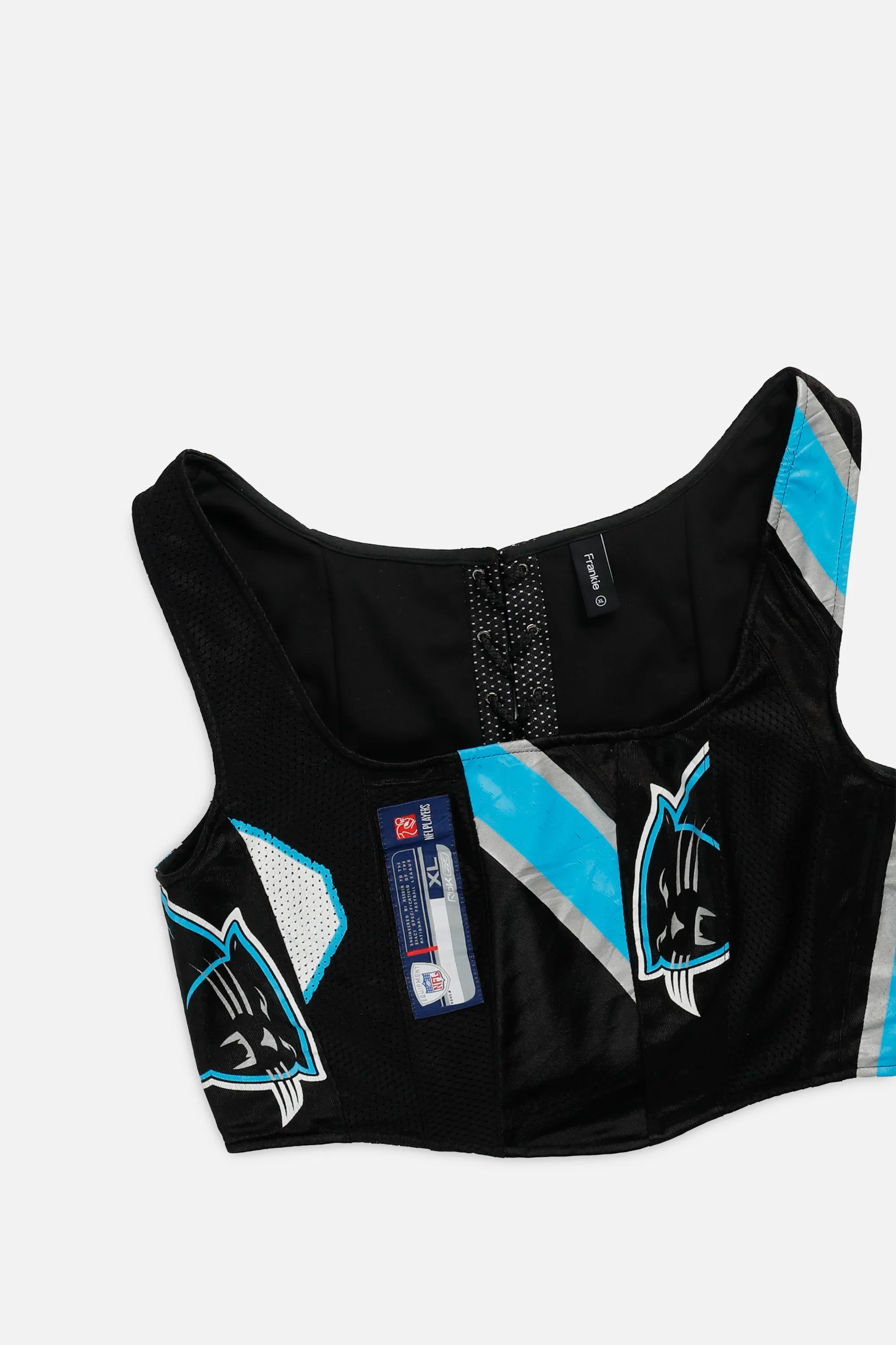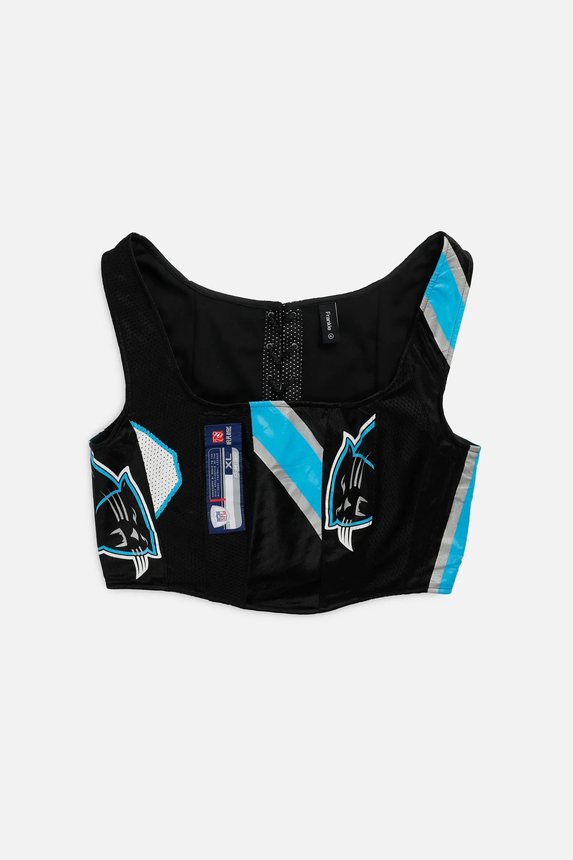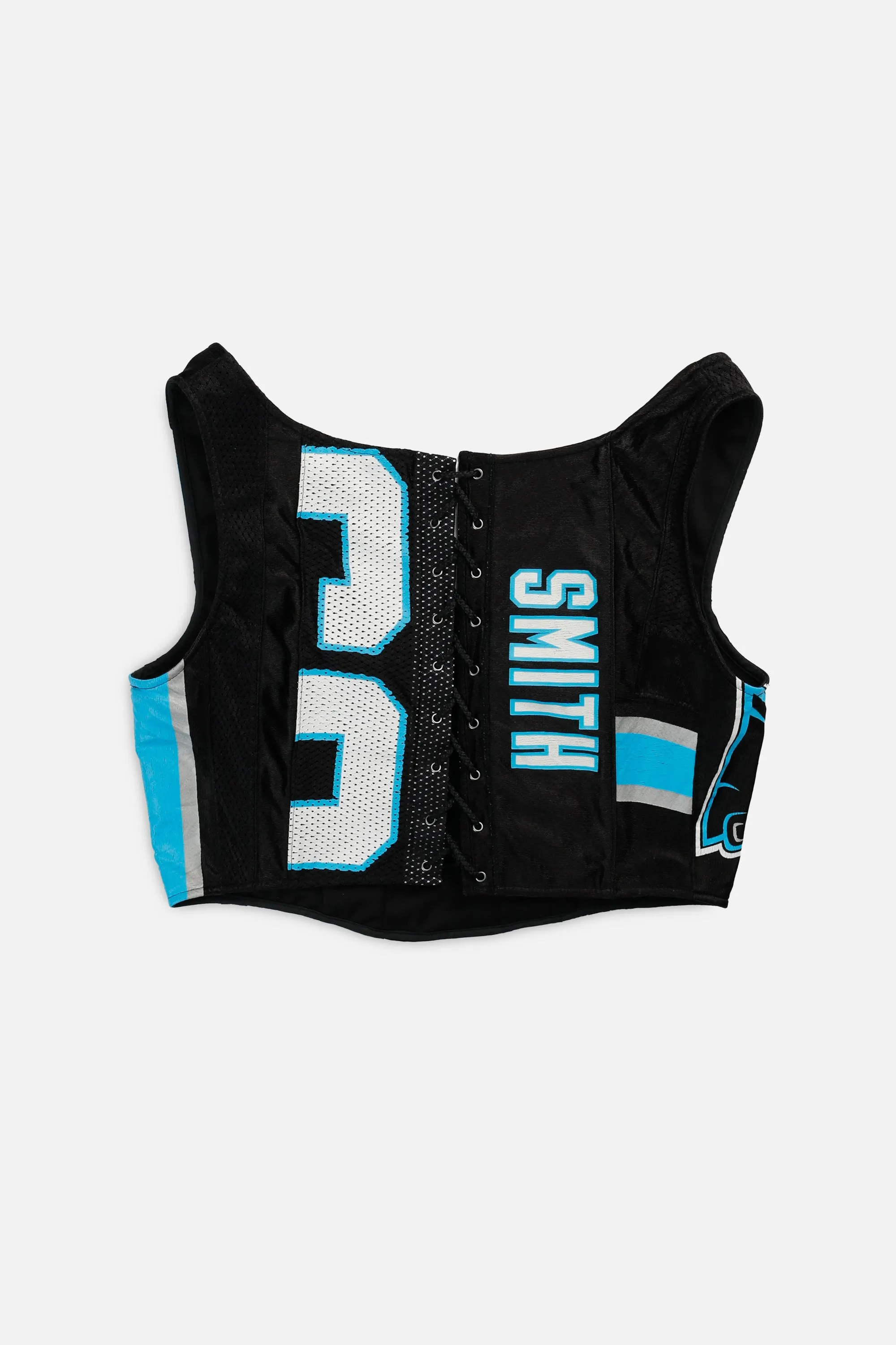 Corset upcycled from a Steve Smith Sr. NFL jersey with lace-up back and curved front hem line. Lined.