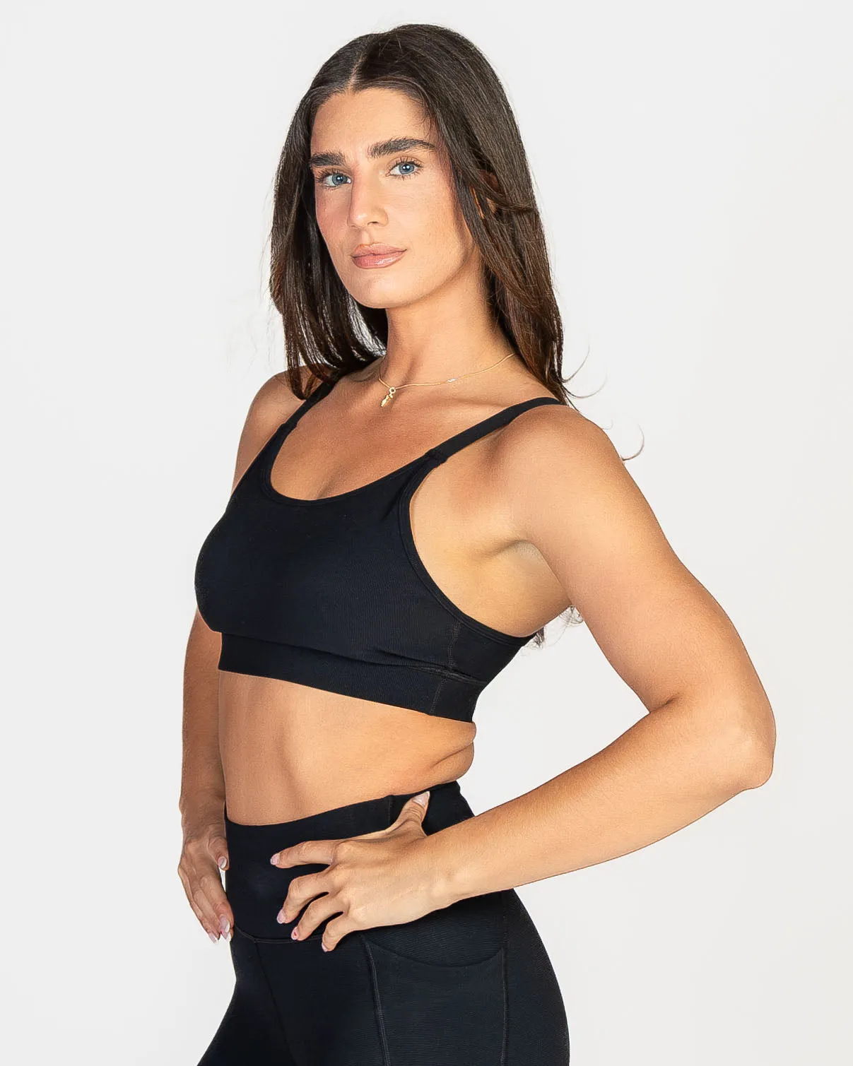 Discover our latest innovation, the Adjustable Ribbed Sports Bra, designed for the modern athlete. Crafted with medium-to-high-impact, compressive ribbed fabric, it offers up-leveled support during intense workouts. Its unique adjustable design allows for a personalized fit, transitioning smoothly from a vertical to criss-cross configuration. With removable bra pads, customizable strap lengths, this sports bra is your ultimate workout partner, combining functionality with personalized comfort to keep you focused and unstoppable. For those seeking a more relaxed fit, we recommend sizing up if in-between sizes.