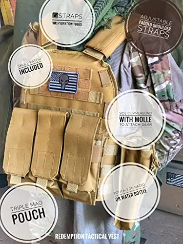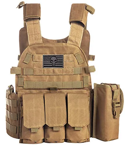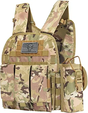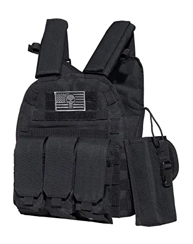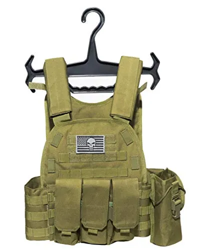 Our “Sentry 2.0” Plate Carrier Tactical vest is perfect for airsoft games, larping or a tactical training vest. Comes with a Skull Hook and Loop US flag patch.