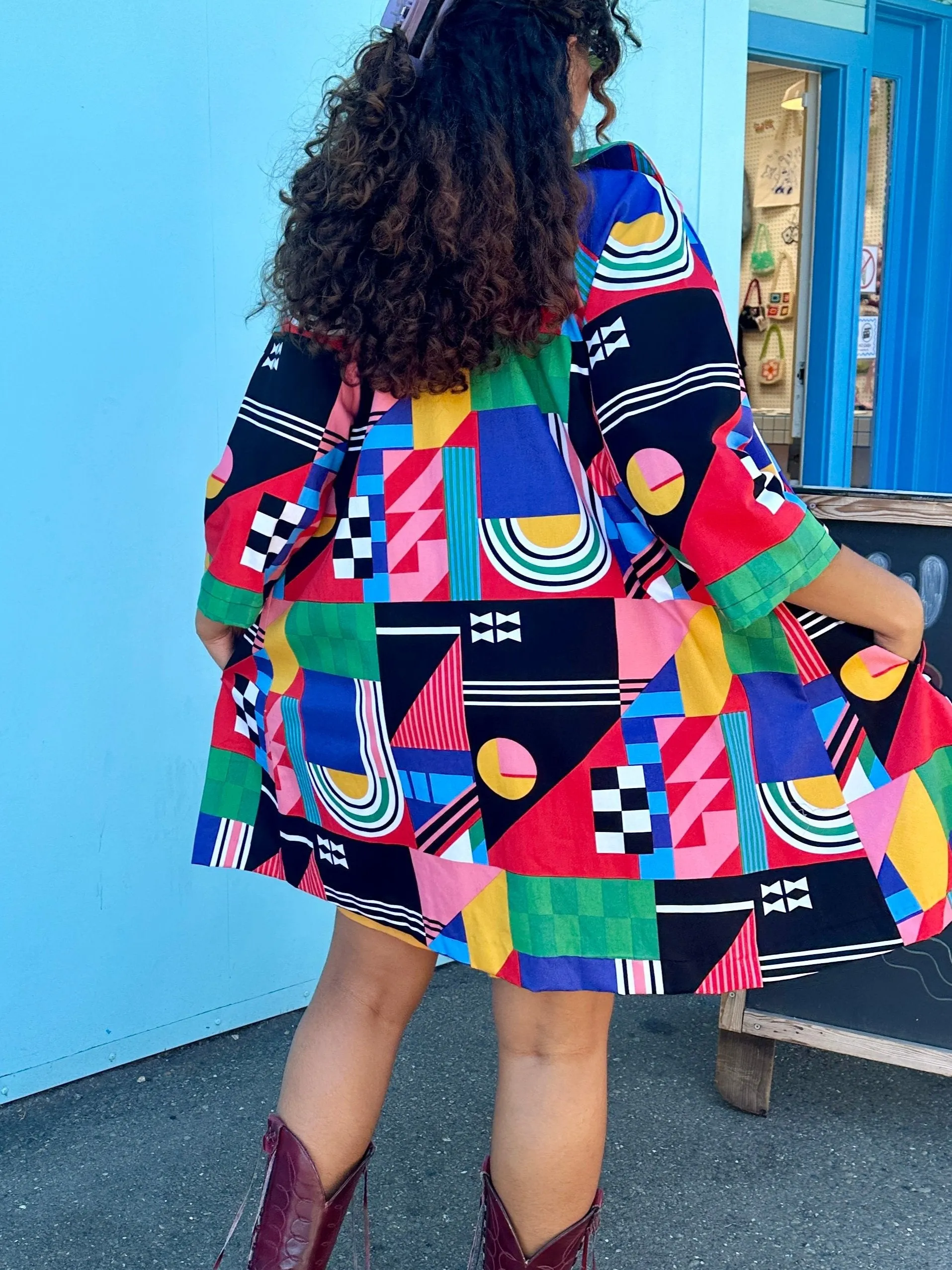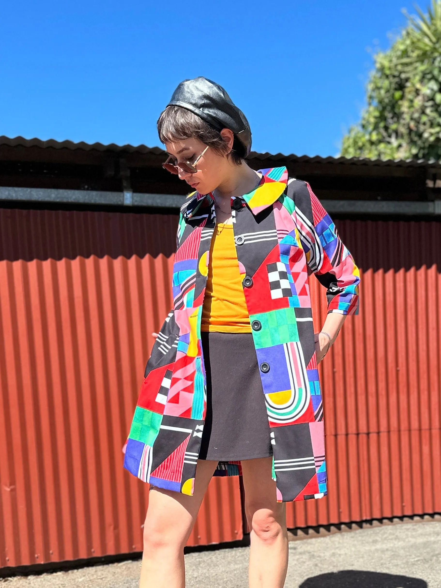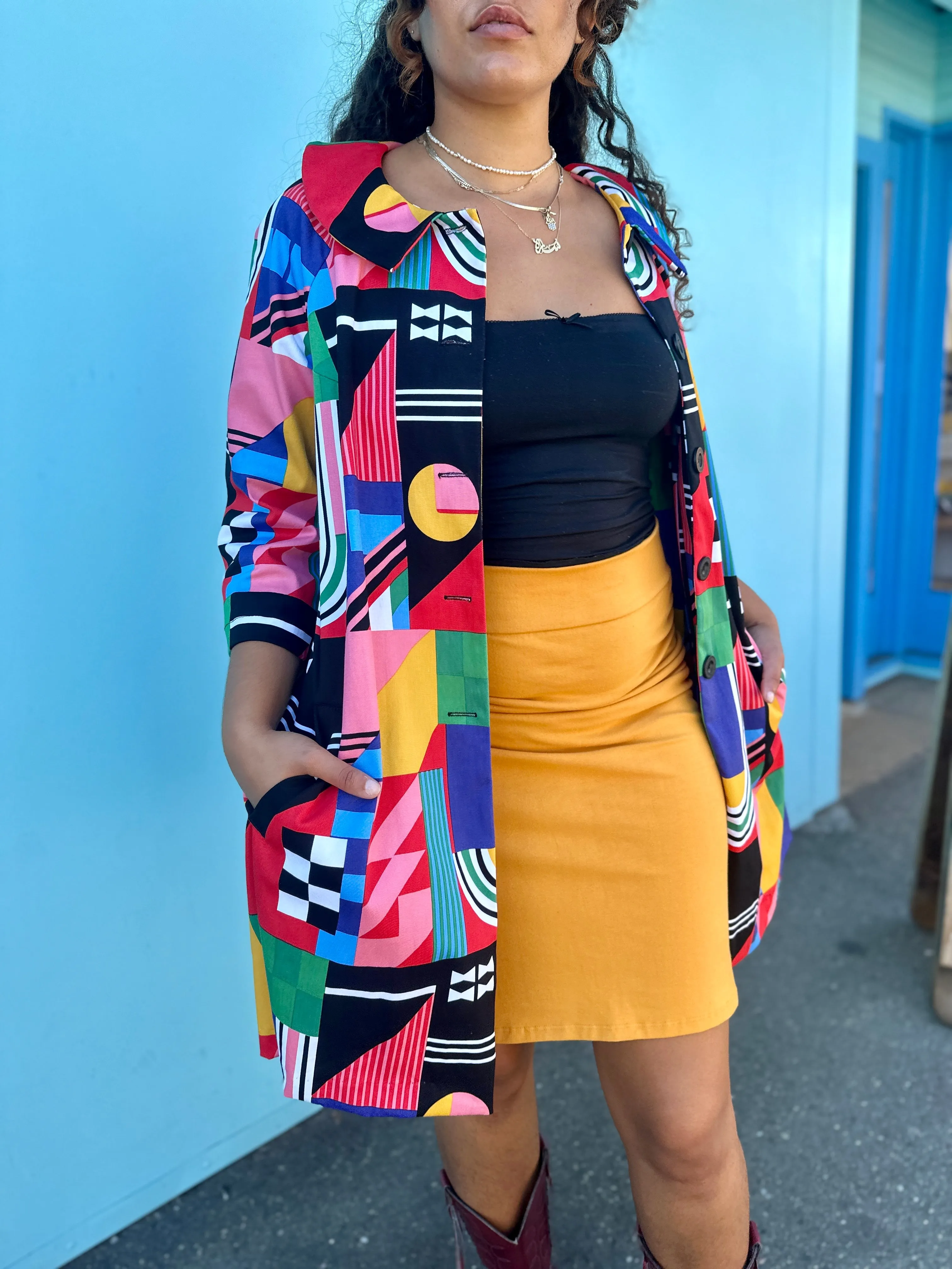 The Shelley Coat is patterned off a classic 50's day coat so it's the perfect way to add a little vintage flair to your look. The outer layer is made in our soft twill, and it's lined throughout with even softer cotton poplin in the matching print. You can really feel the quality in the texture and weight of this fully lined coat. Shelley also features an A-line silhouette, three-quarter length sleeves, a rounded collar, four large buttons down the front, front slant pockets, and hits a bit above the knee.
