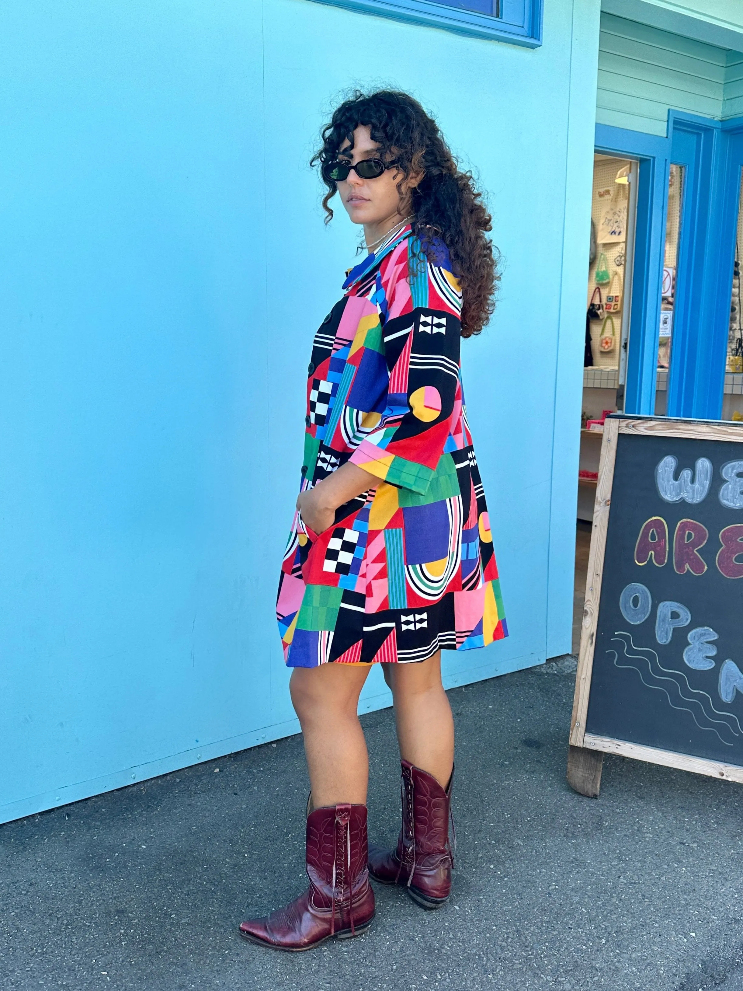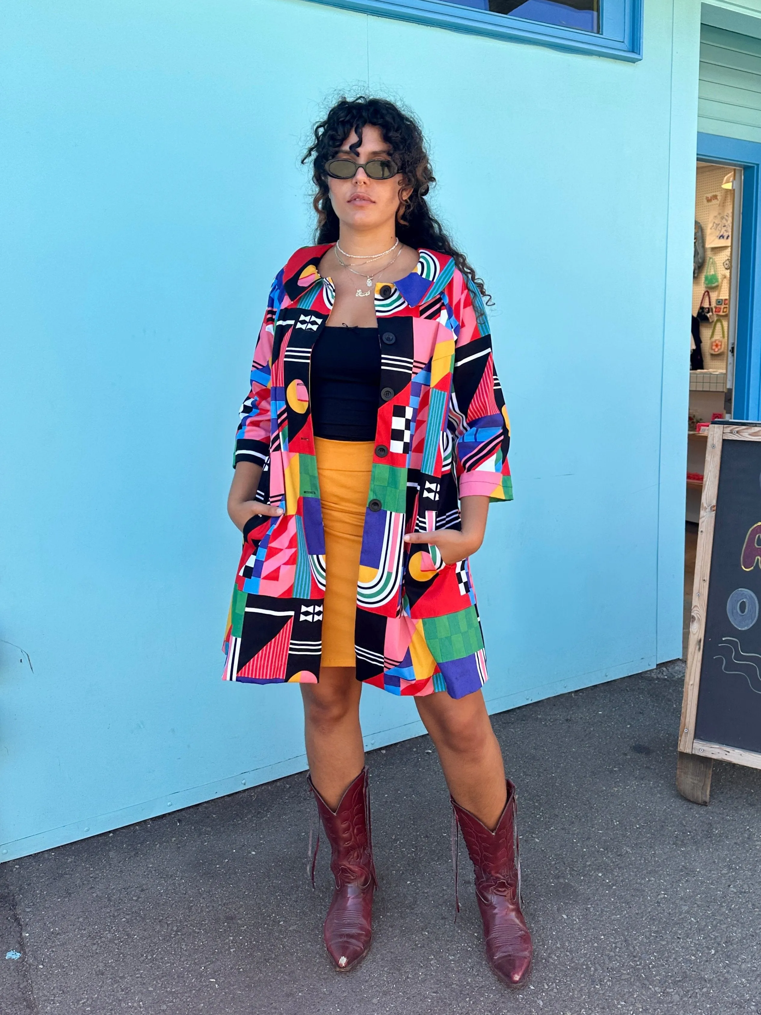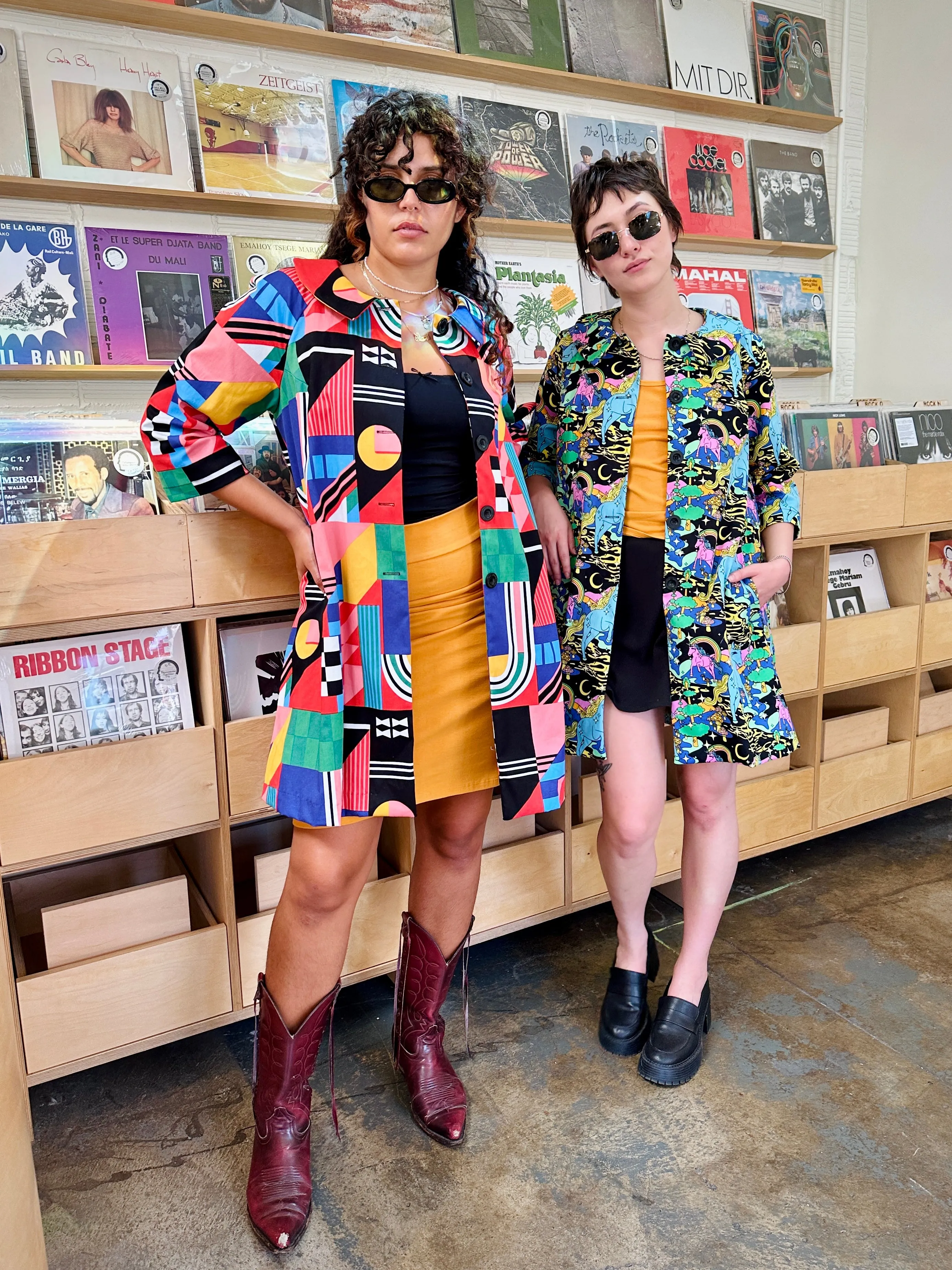 The Shelley Coat is patterned off a classic 50's day coat so it's the perfect way to add a little vintage flair to your look. The outer layer is made in our soft twill, and it's lined throughout with even softer cotton poplin in the matching print. You can really feel the quality in the texture and weight of this fully lined coat. Shelley also features an A-line silhouette, three-quarter length sleeves, a rounded collar, four large buttons down the front, front slant pockets, and hits a bit above the knee.