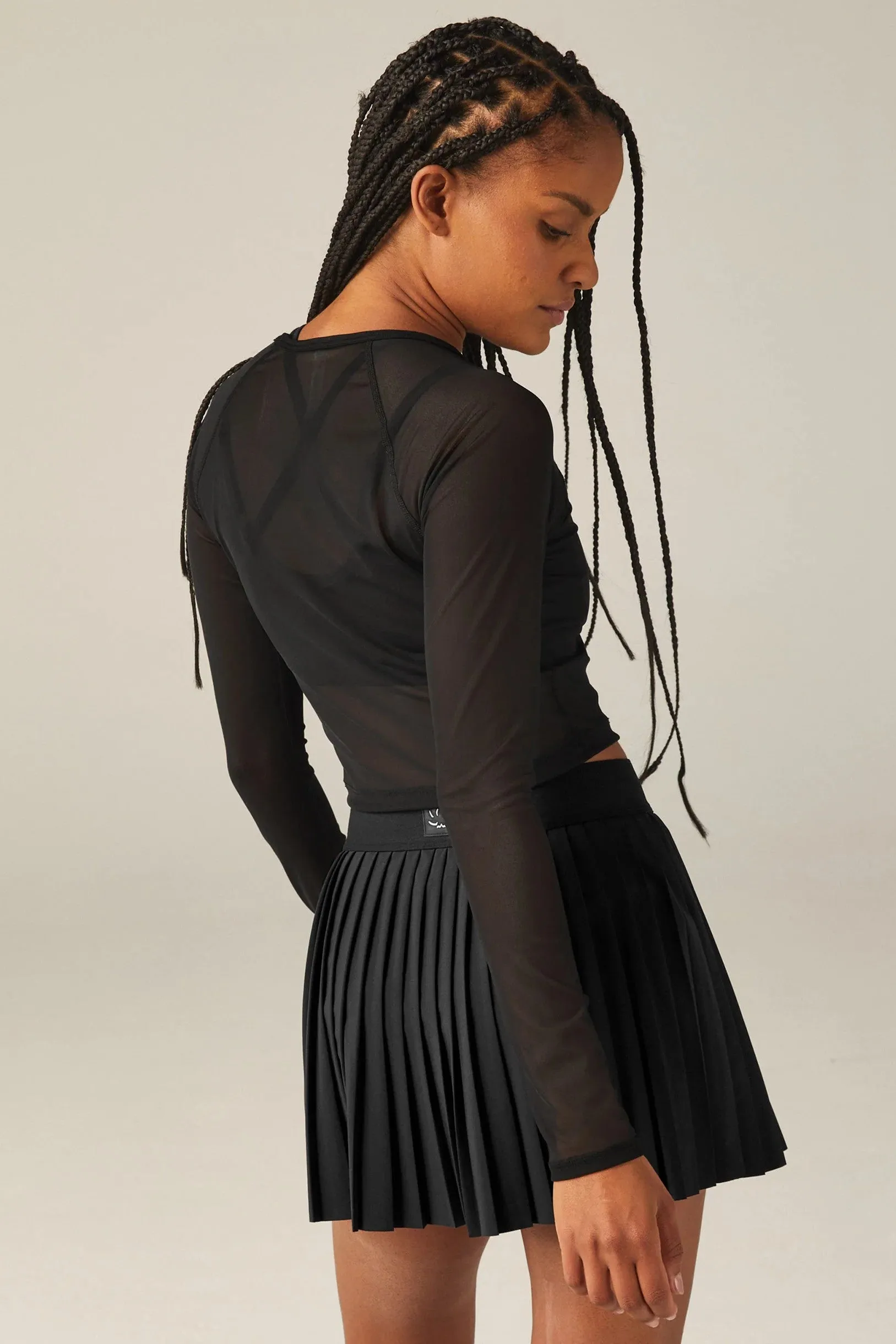 Make a subtle statement in this slightly sheer long sleeve cropped top, designed to layer on top of activewear, swimsuits, and more. With a soft, slinky feel that lets you feel cool and comfortable even on hot days, while offering that little bit of extra coverage you crave after your swim or workout is over.