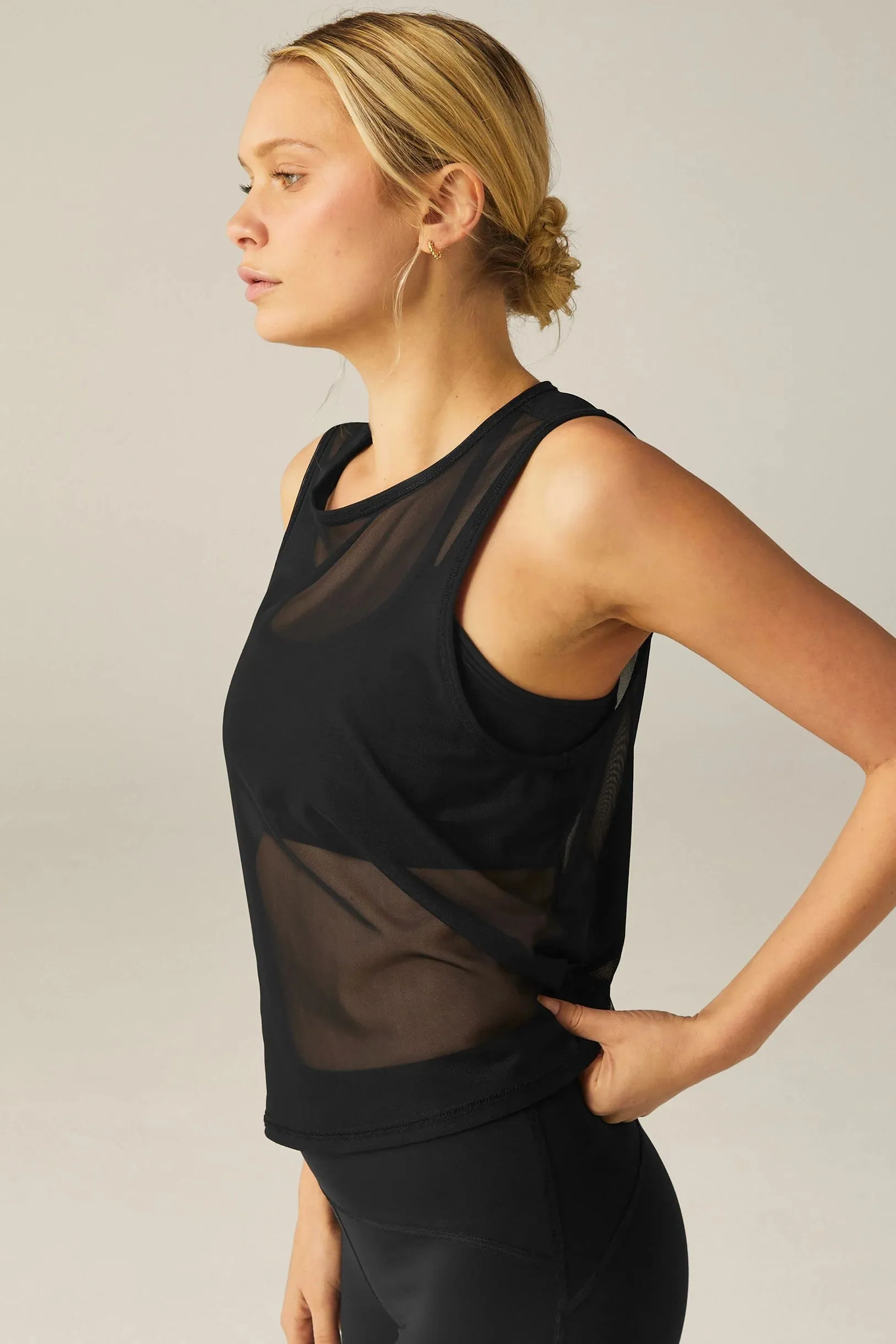 Make a subtle statement in this slightly sheer mesh tank, designed to layer on top of activewear, swimsuits, and more. With a soft, slinky feel that lets you feel cool and comfortable even on hot days, while offering that little bit of extra coverage you crave after your swim or workout is over.