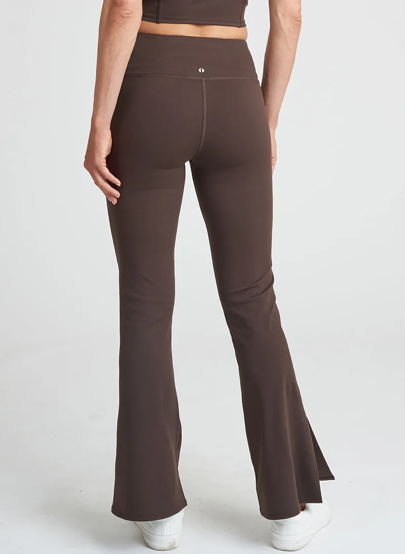 These Side Slit Flare Legging boast a high-waisted fit, narrowing to a fitted knee and then flaring out. Their Dynamic cotton-hand compression fabric offers medium compression that's ideal for light- to medium-impact exercise, and a wide waistband with a stash pocket adds practicality. The outseam also features a vented side slit for added breathability.