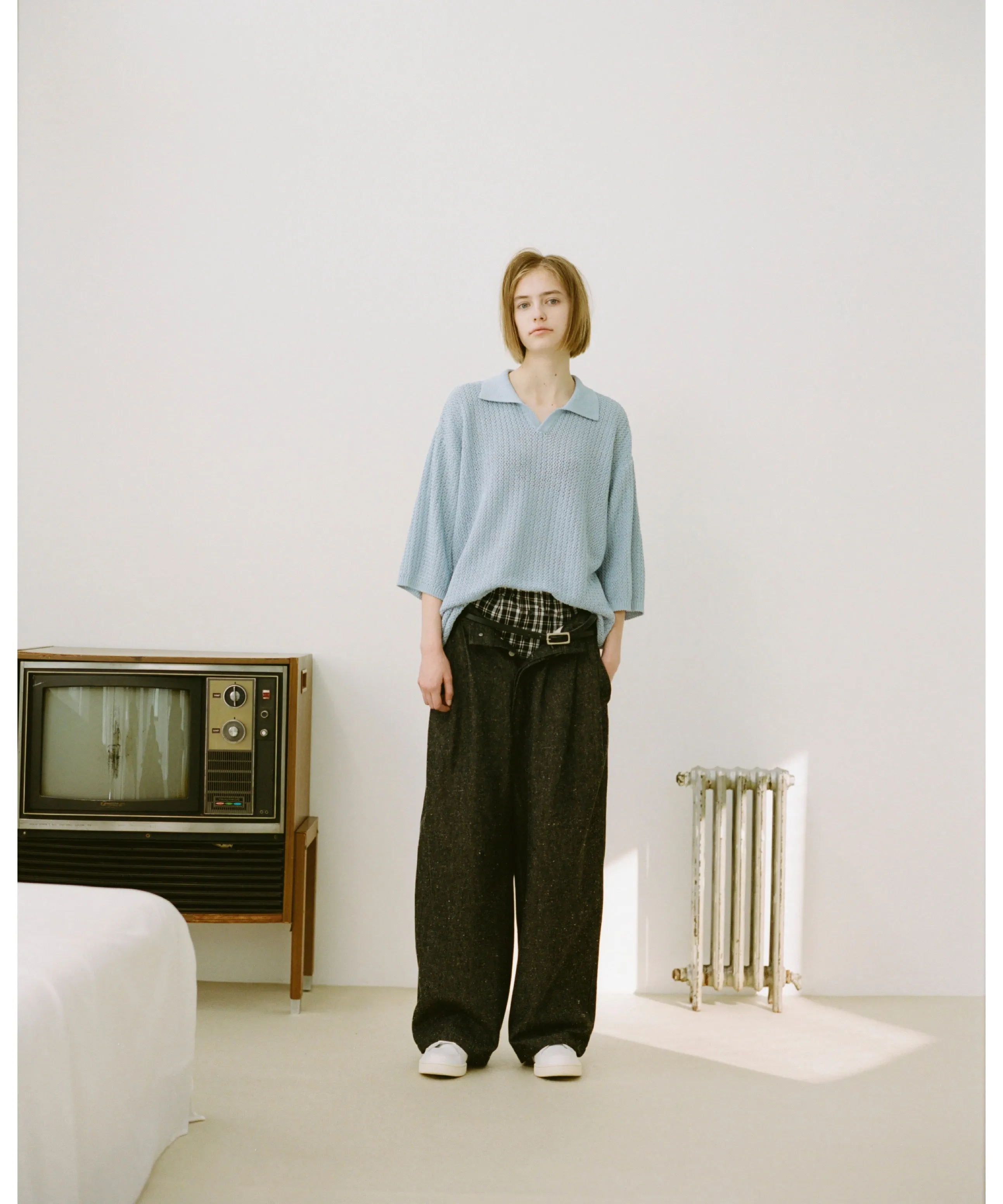 Blanc YM定番のスキッパーニット、ハーフスリーブ仕様で初リリースです。