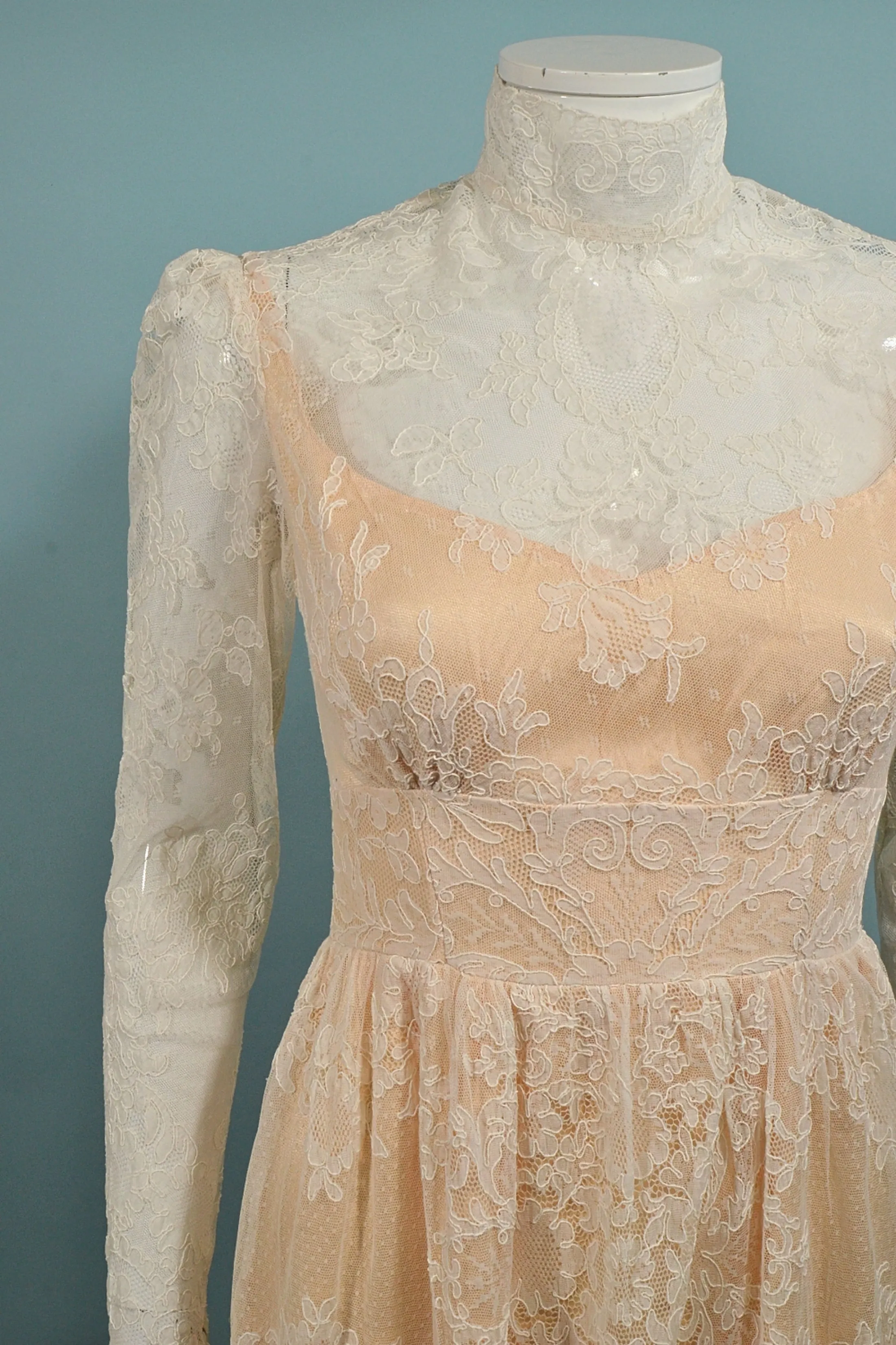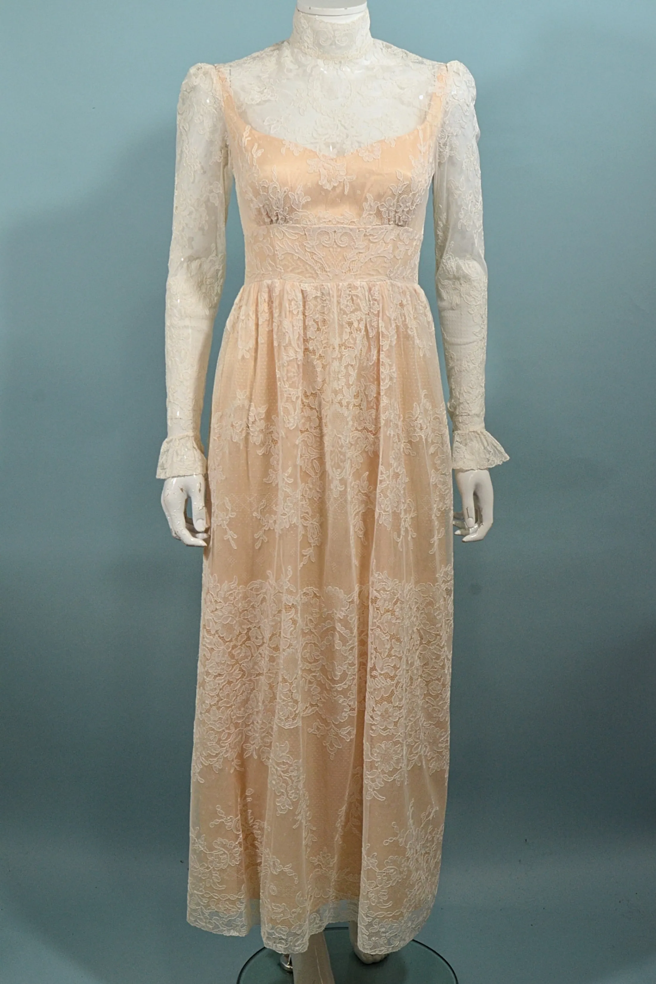 Vintage cream lace maxi dress in the Victorian/Edwardian style.