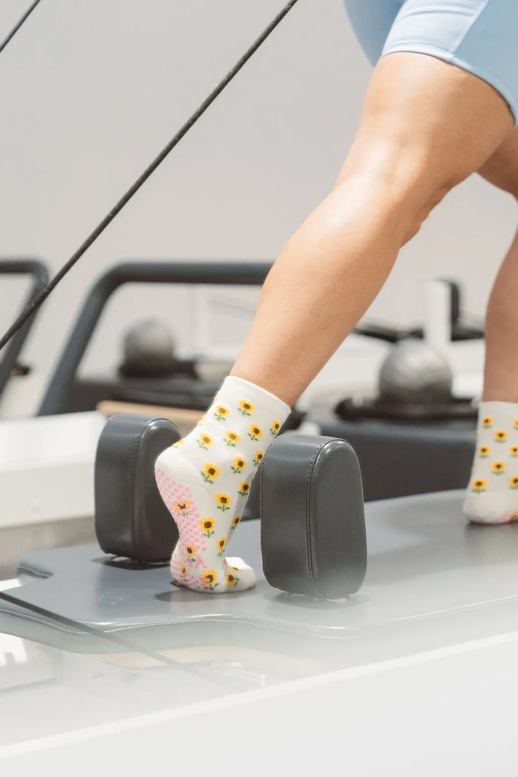 Designed to add a dash of personality to your exercise routine, our NEW Sunflower quarter length socks come lined for durability and are super comfy.