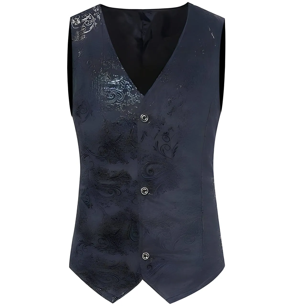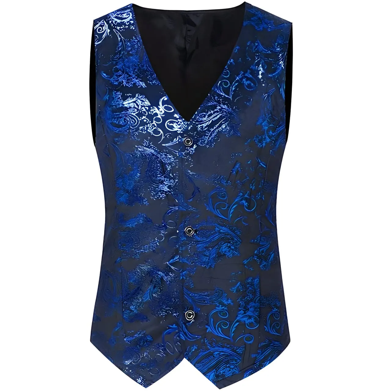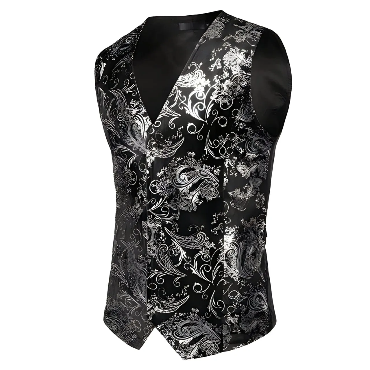 Fall in love with the luxurious detail and styling on this gorgeous tuxedo vest. Features intricate embroidery and detailed construction throughout. The perfect piece for any formal occasion. Steal the show.