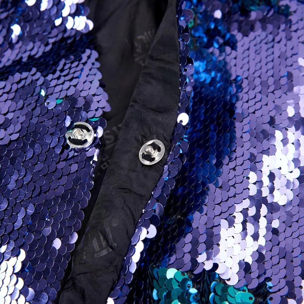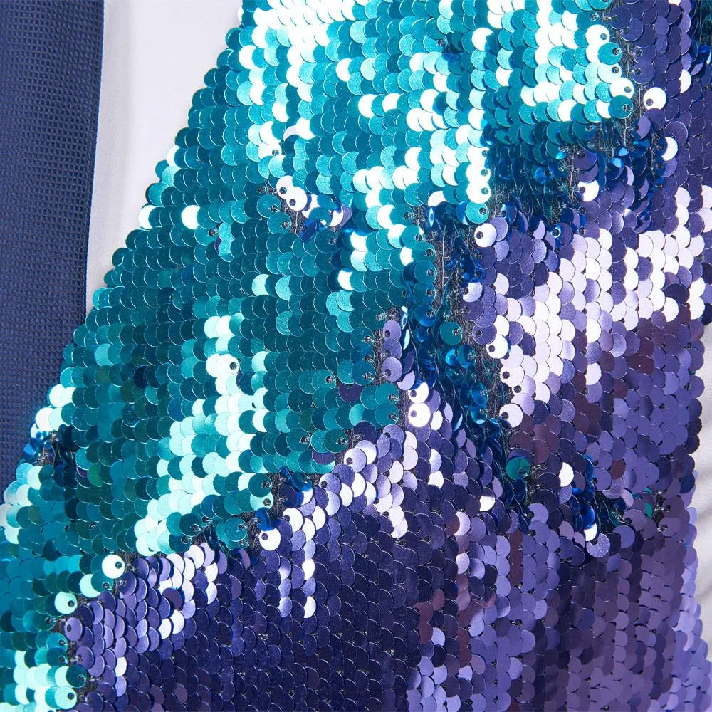 Experience the superior detail and styling on this meticulously crafted sequin tuxedo vest. The "Manifesto" features a gorgeous double-sided sequin design that changes colors with the slightest touch, and detailed construction throughout. Only for the bold.