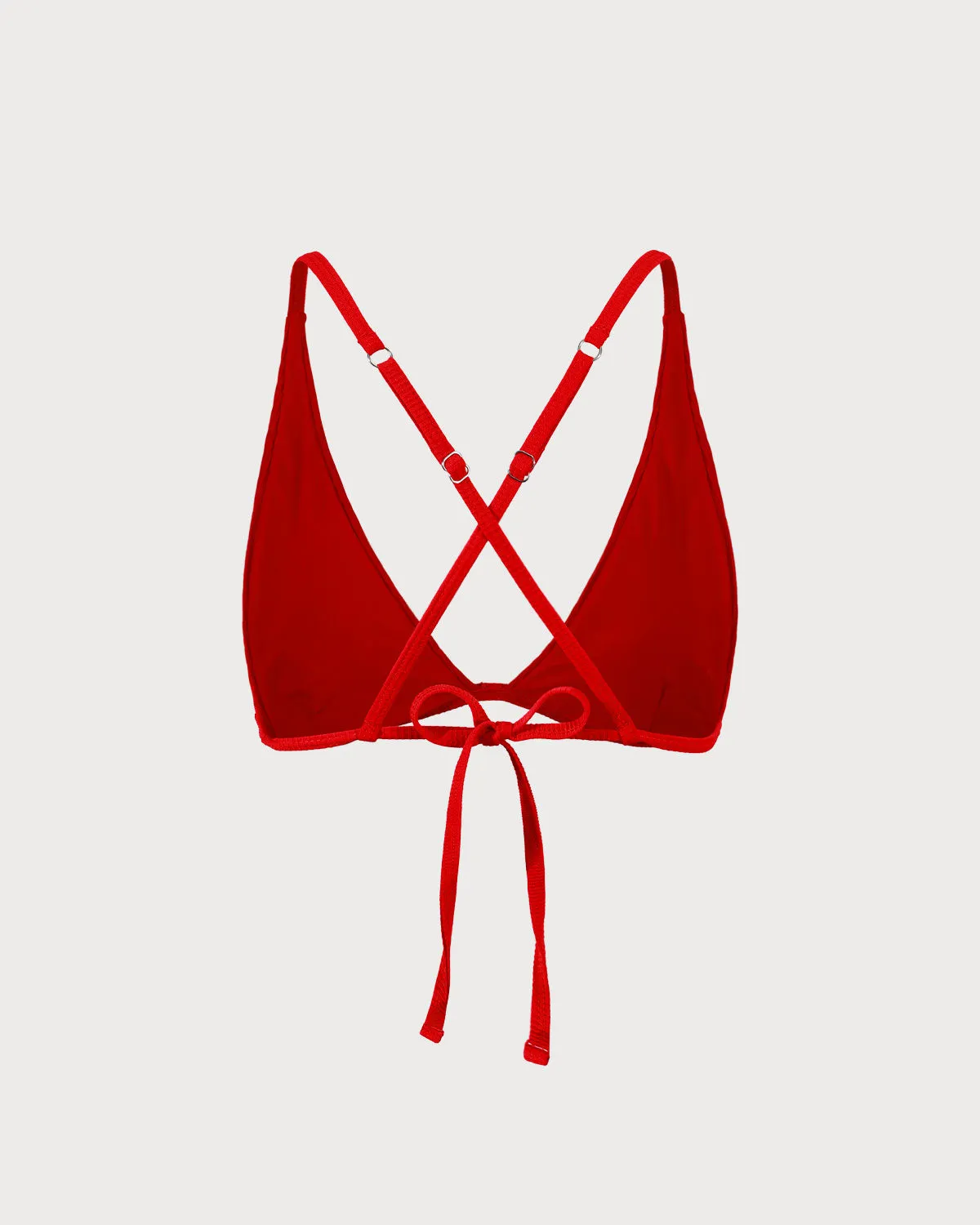 Stand out in vibrant red with this stylish bikini top, featuring a ribbed texture and a cross-back design for a secure and fashionable fit.