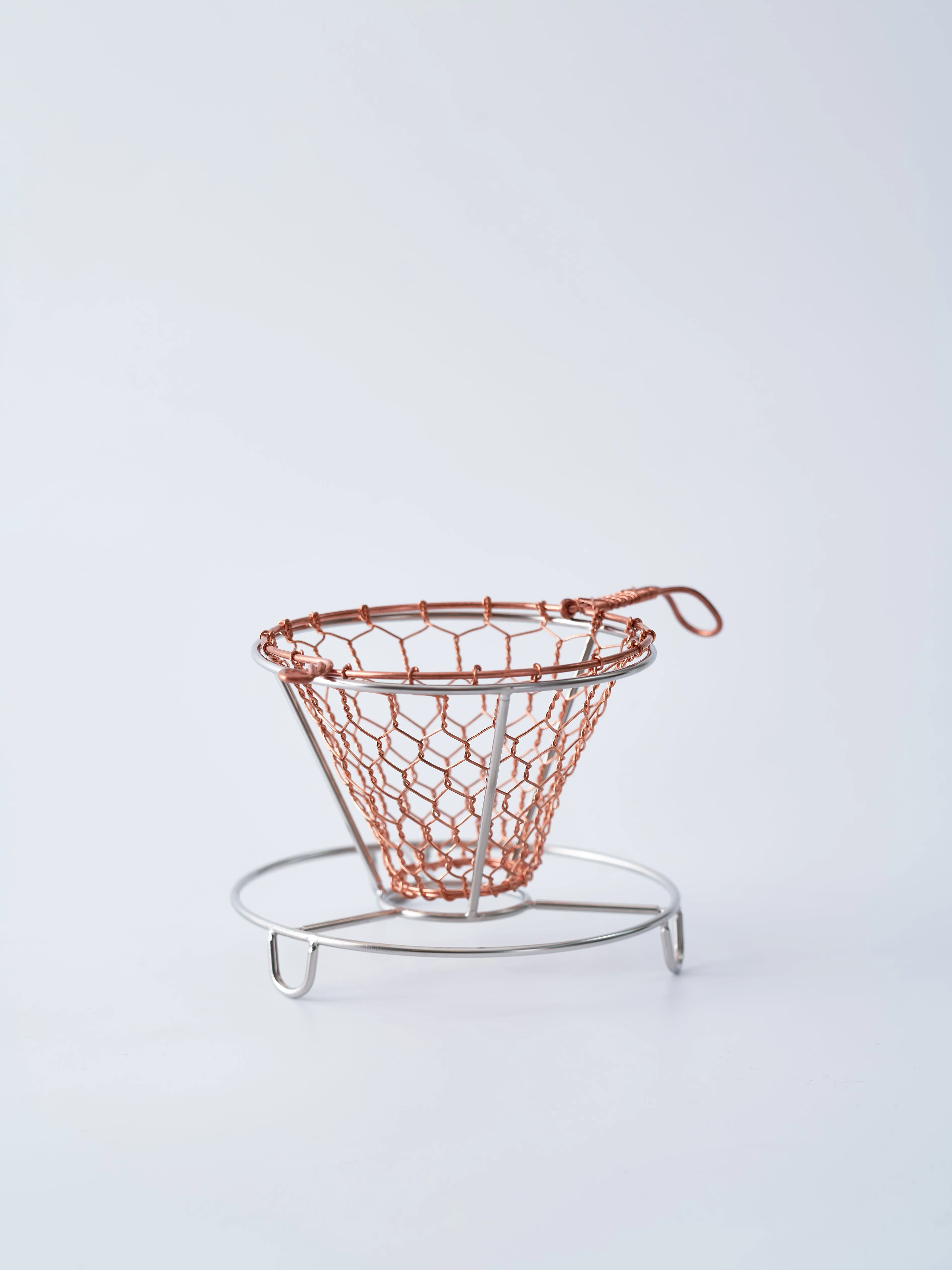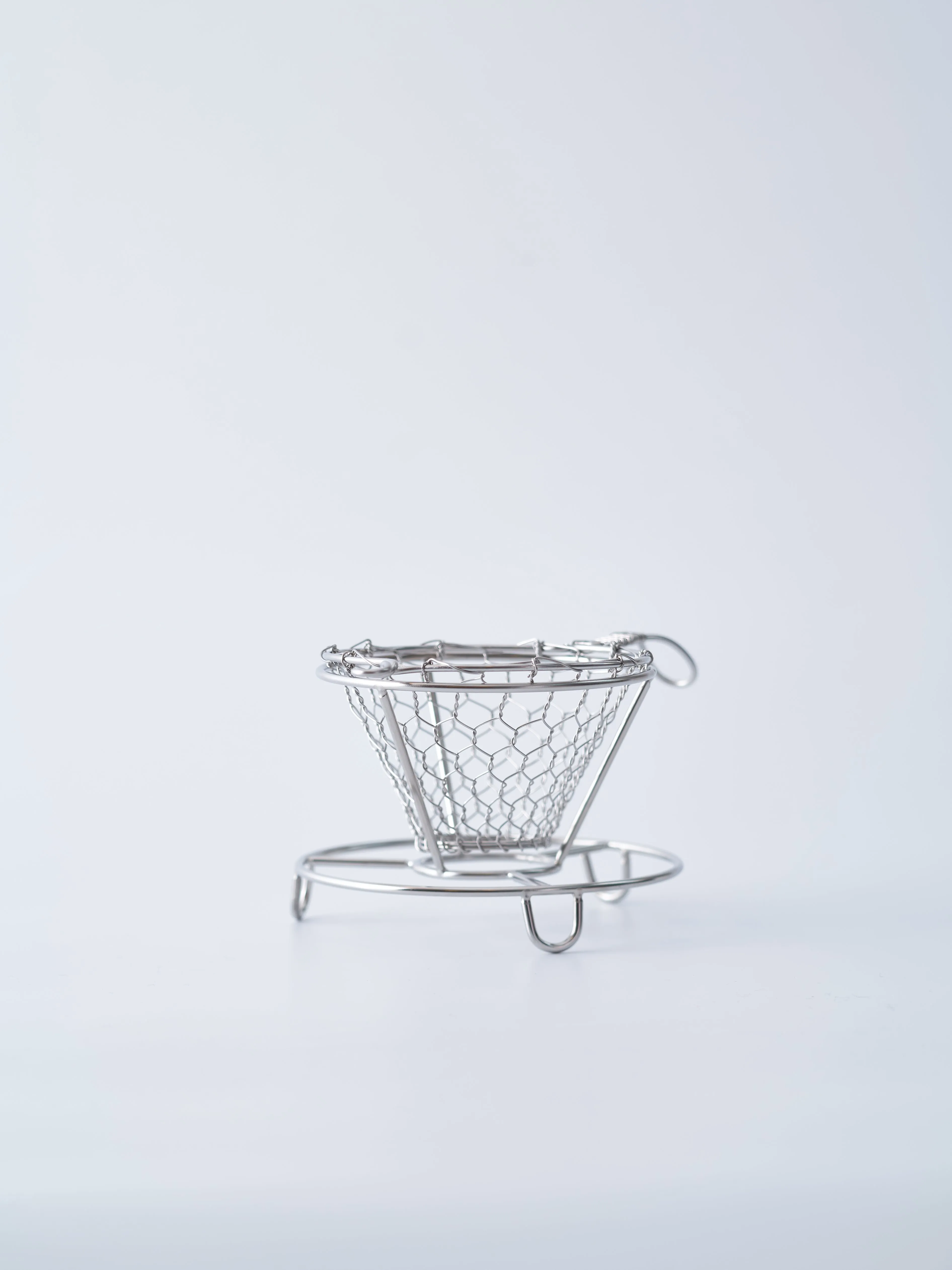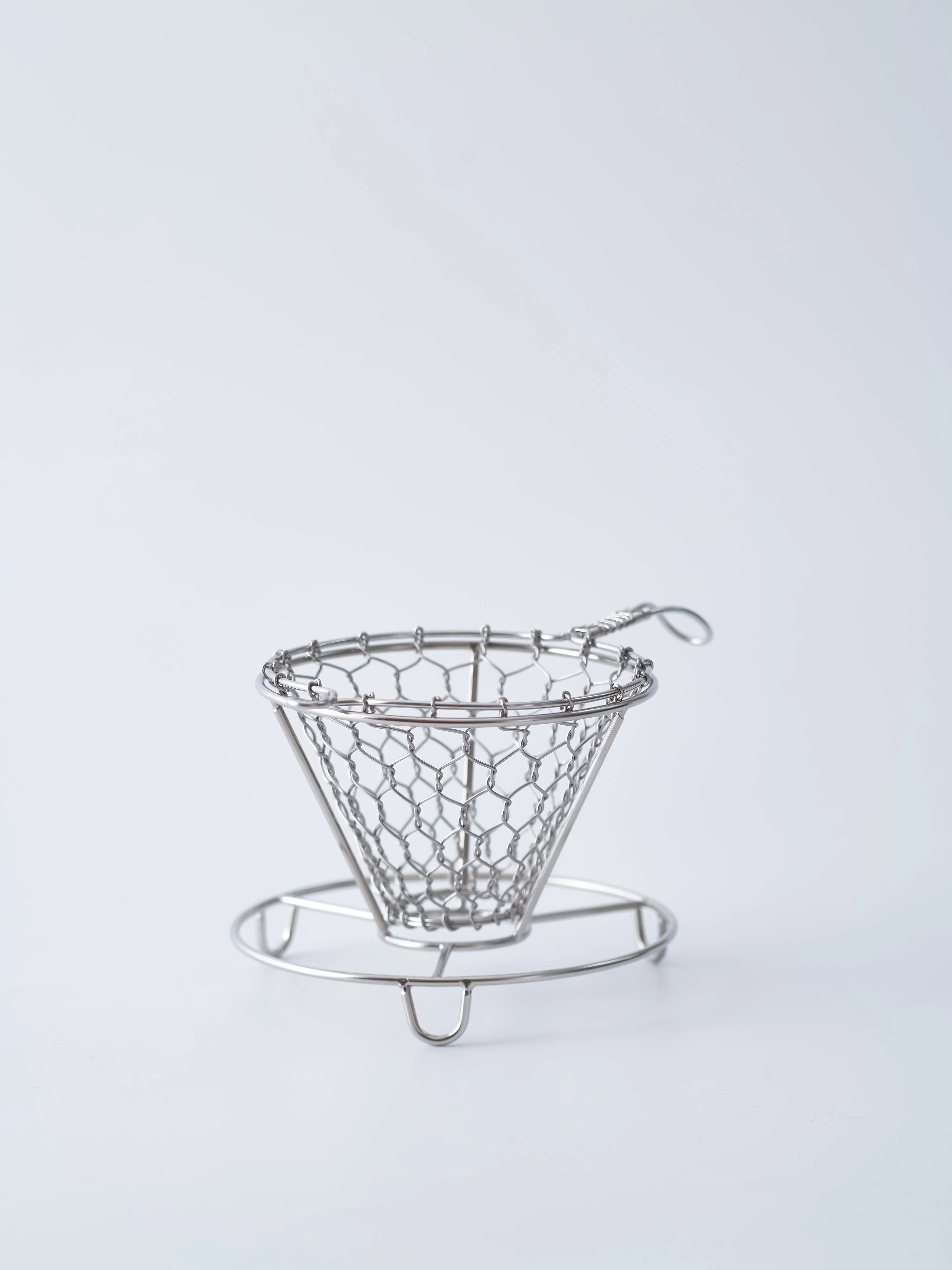 Wire netting technique meets coffee brewing. Each dripper is handmade in Kyoto with precision by Tujiwa Kanaami. Elegant yet practical, place conical paper filter inside and experience brewing mellow and sweet coffee.