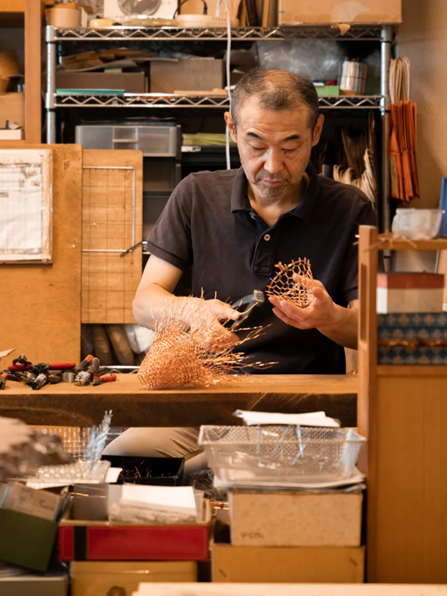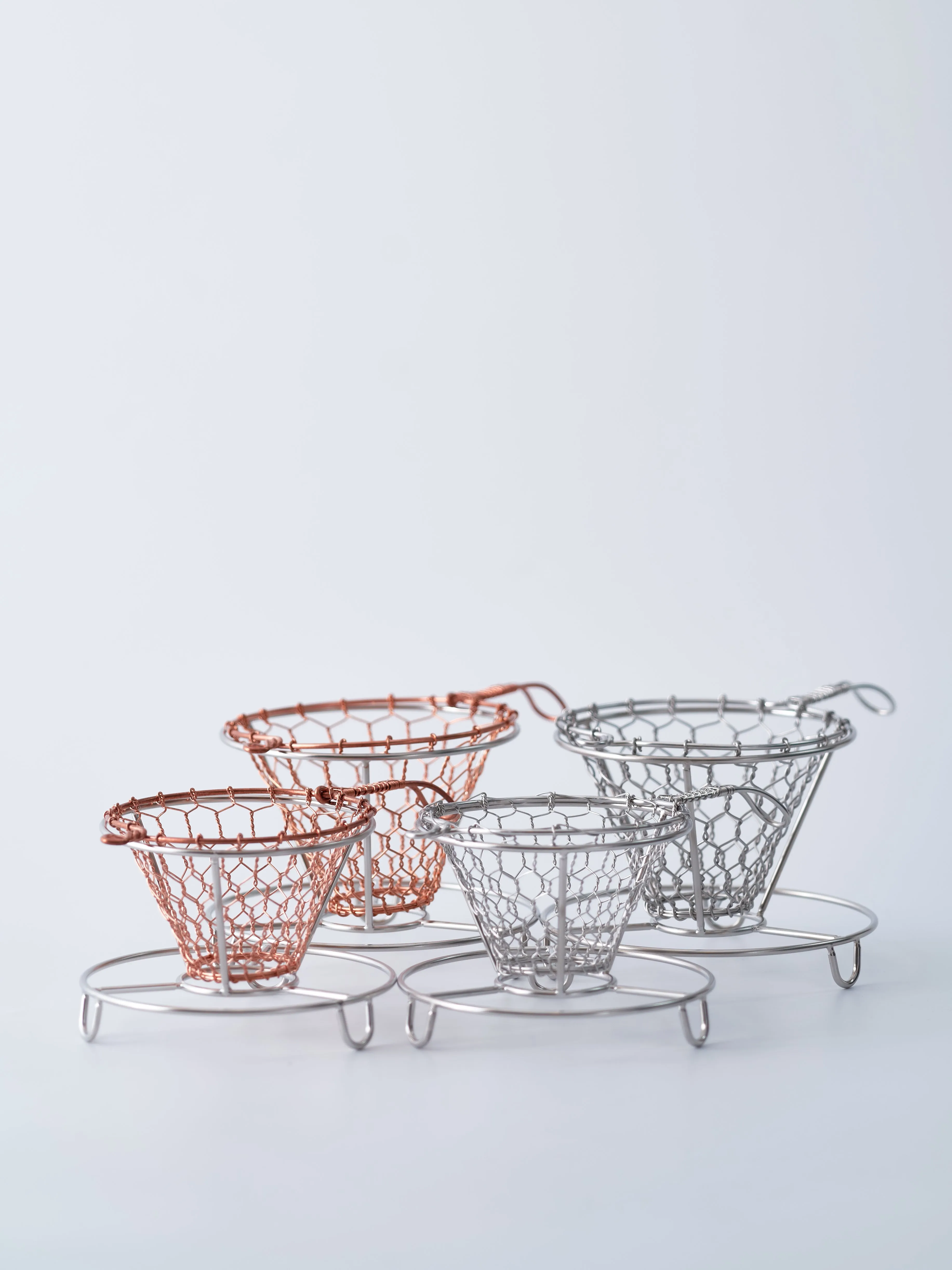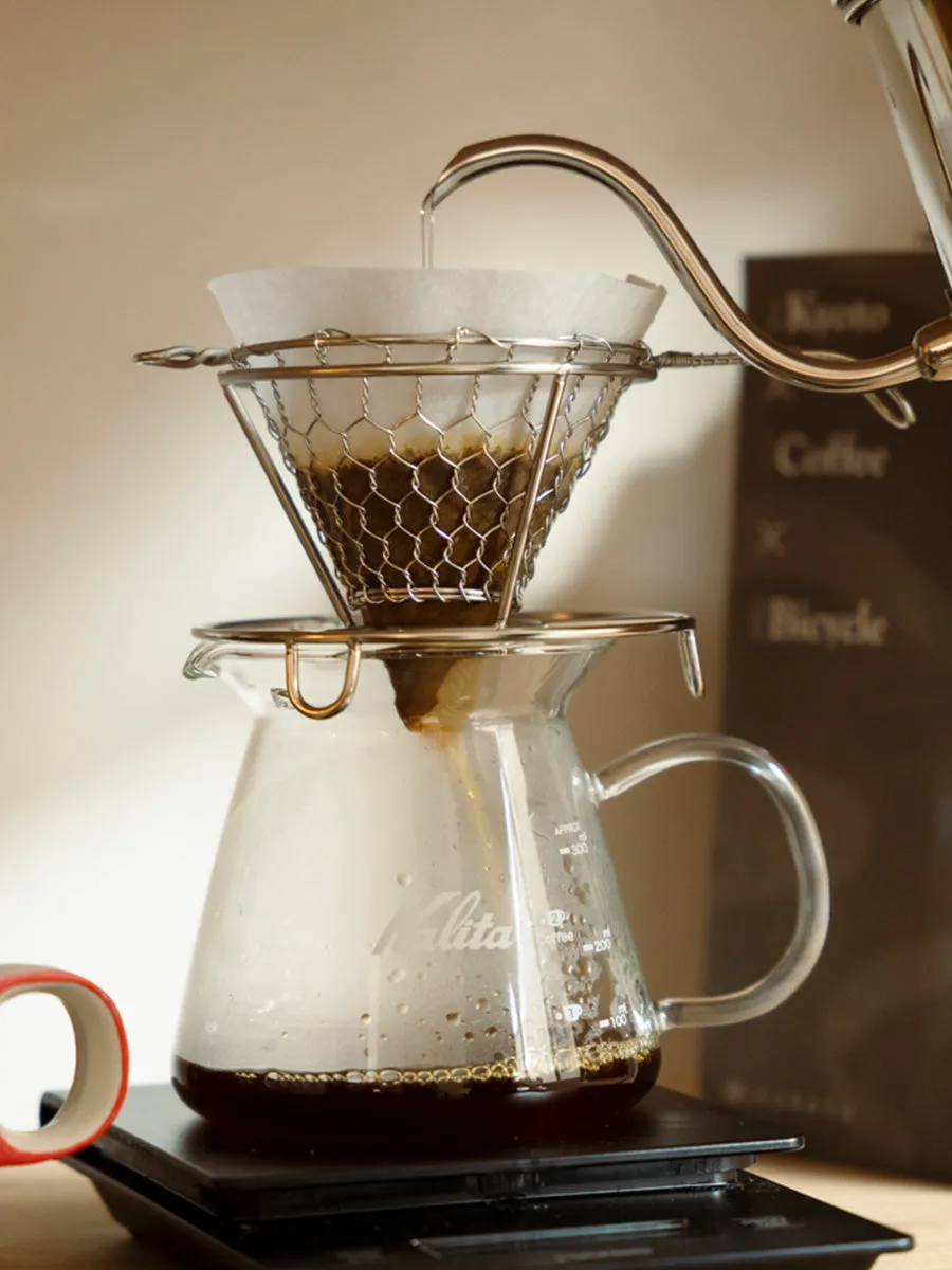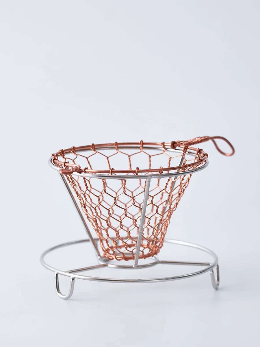 Wire netting technique meets coffee brewing. Each dripper is handmade in Kyoto with precision by Tujiwa Kanaami. Elegant yet practical, place conical paper filter inside and experience brewing mellow and sweet coffee.