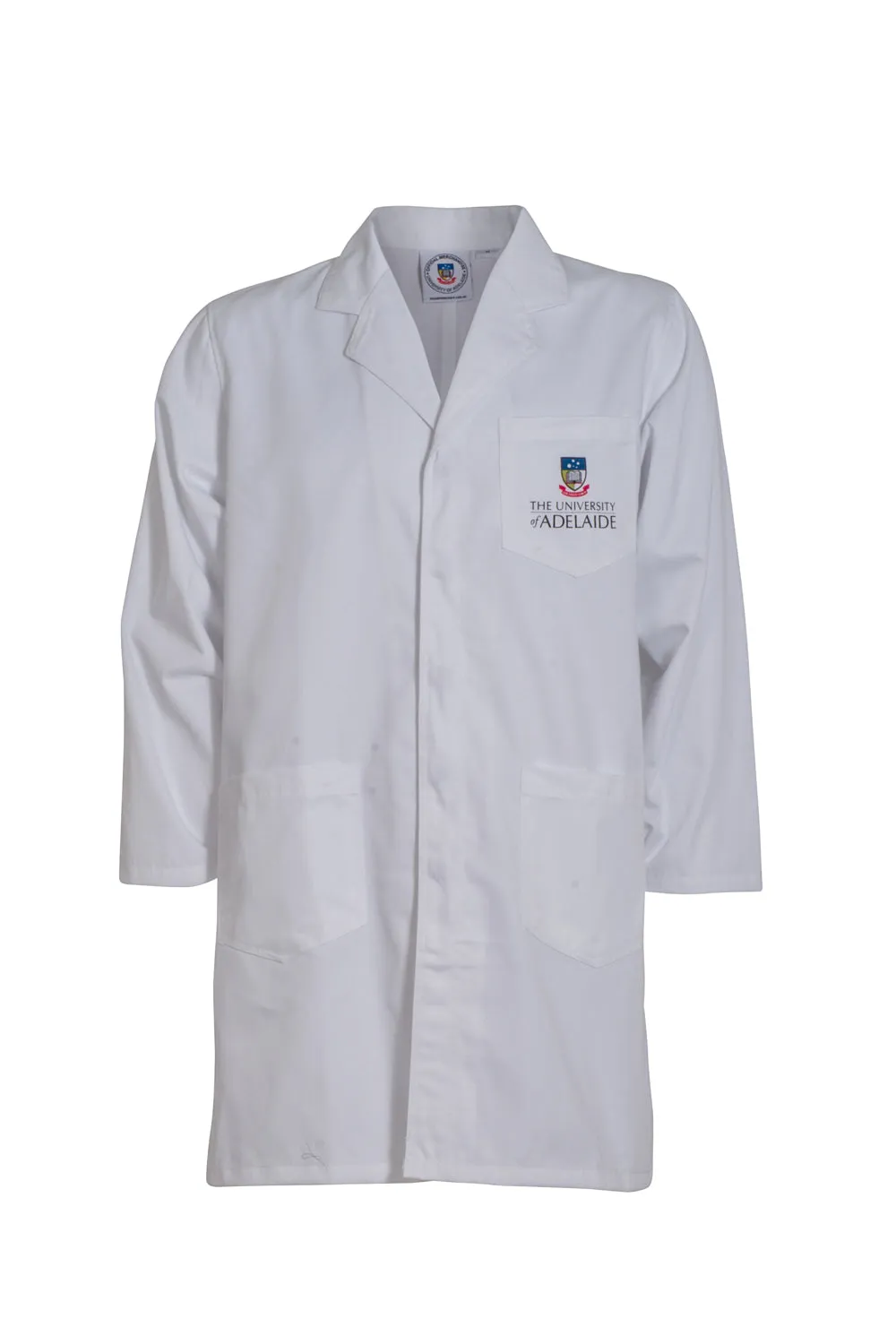 Protect your clothing and wear this lab coat with pride with the official University of Adelaide logo