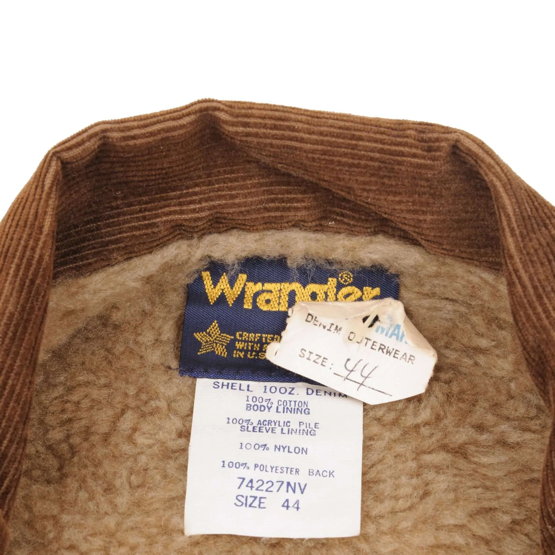 Vintage Deadstock With Tags Wrangler Fur Lined Jacket With Corduroy Collar 1970S Size 44 Made In Usa