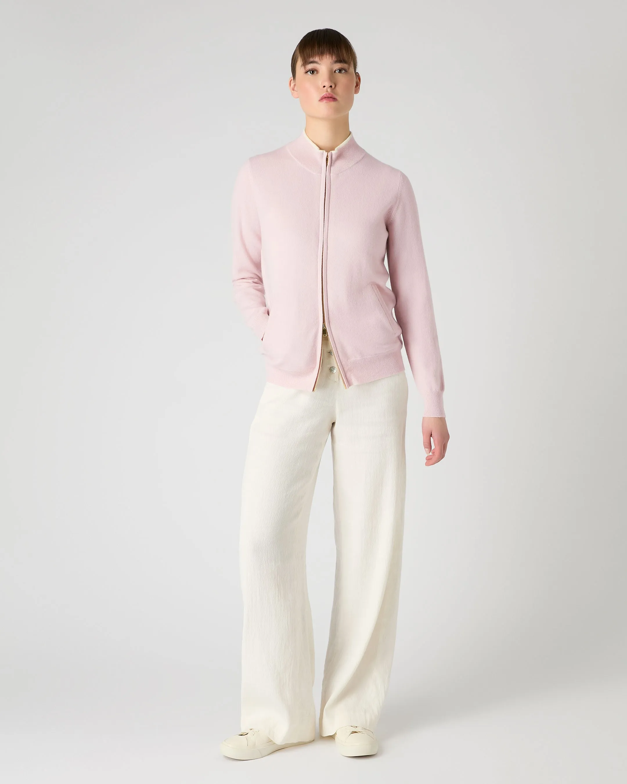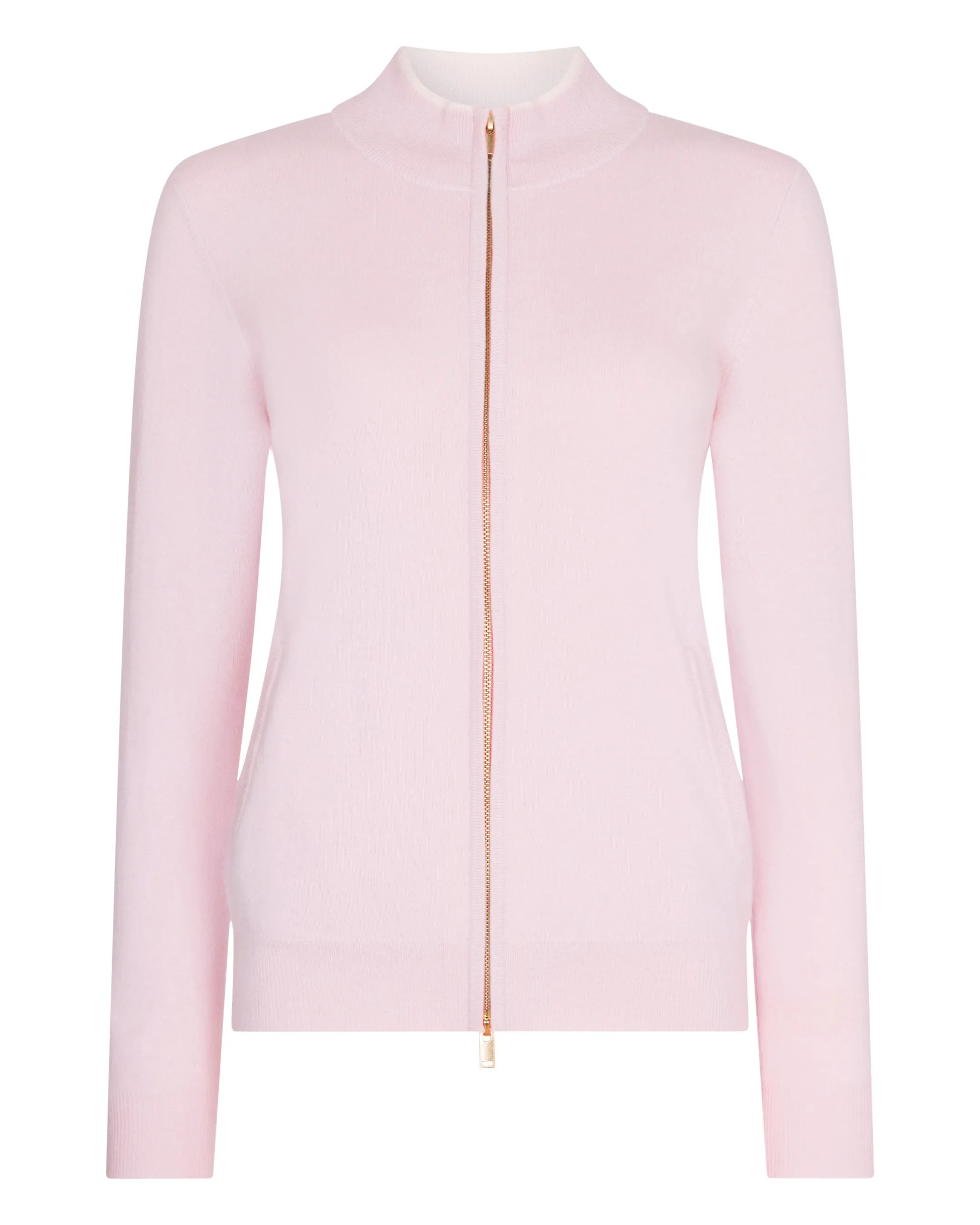Keep warm and stylish in our funnel neck cashmere zip through.