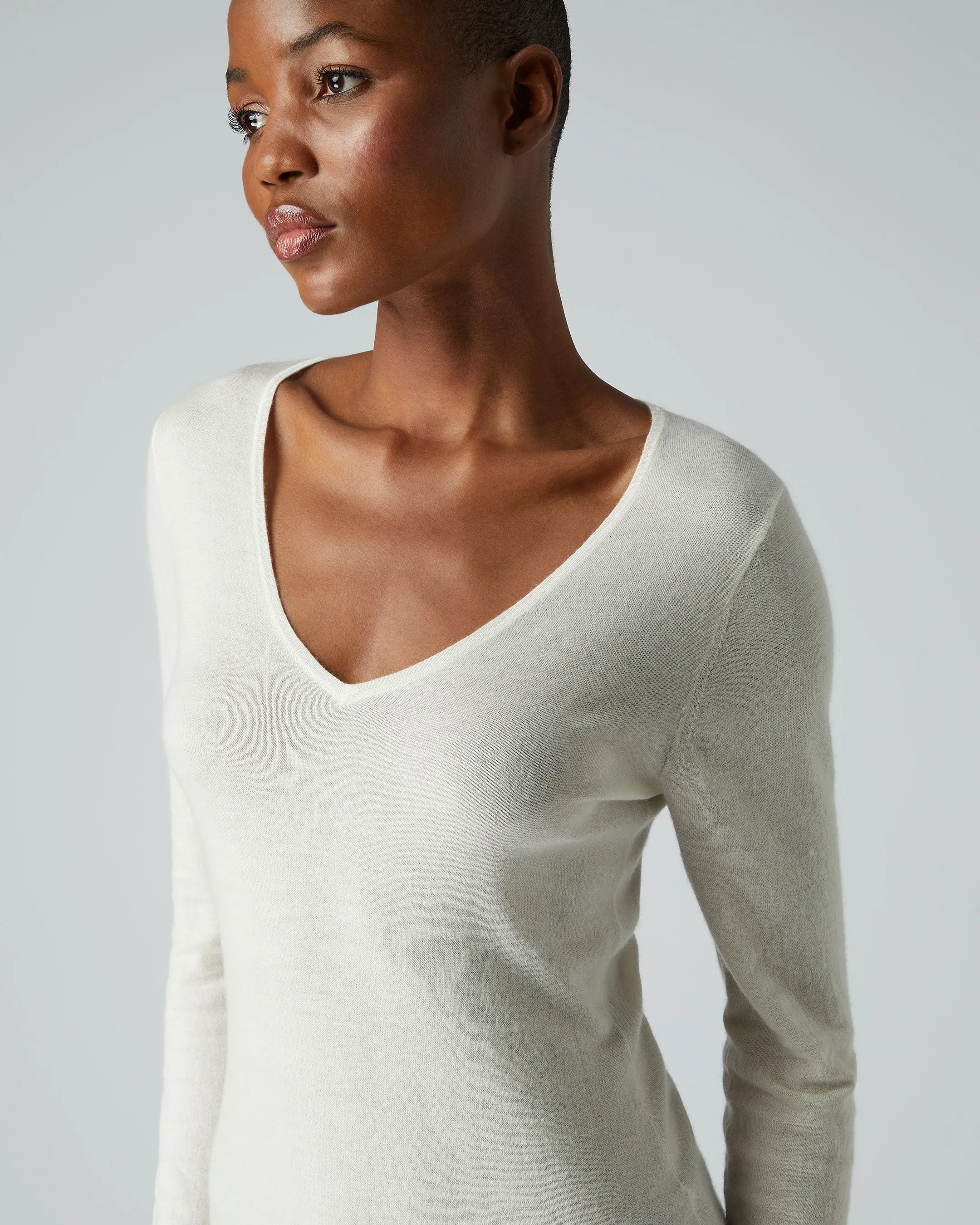 Indulge yourself with this beautiful superfine V neck cashmere sweater.