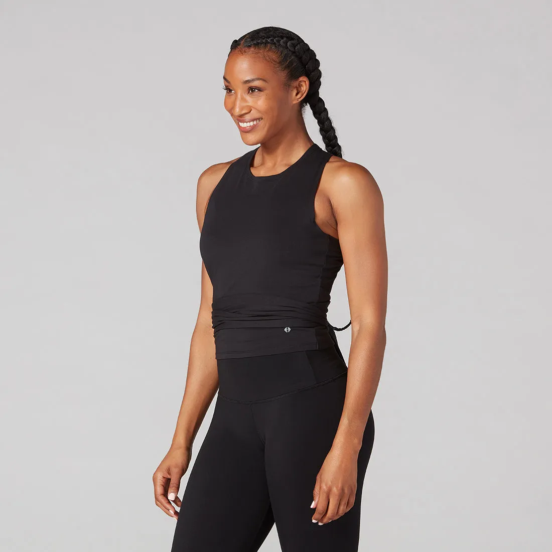 For those days that call for something a little different… extraordinary even… we have the TAVI Wrap Around Tank. Featuring a fitted silhouette, crew neck line, and adjustable wrap ties that can be styled at the front or back, this tank is ready for the studio, the street, and everything in between.