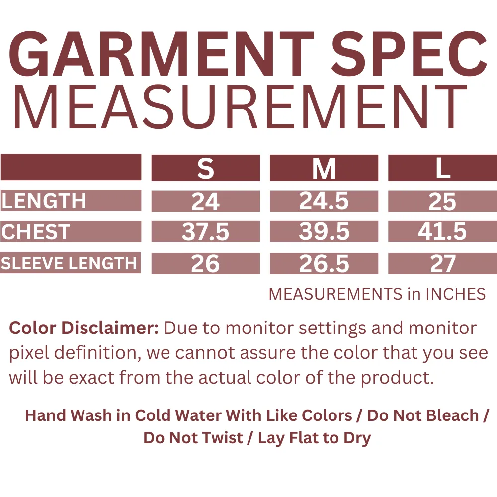 S - Length: 24 in. / Chest: 37.5 in. / Sleeve Length: 26 in.